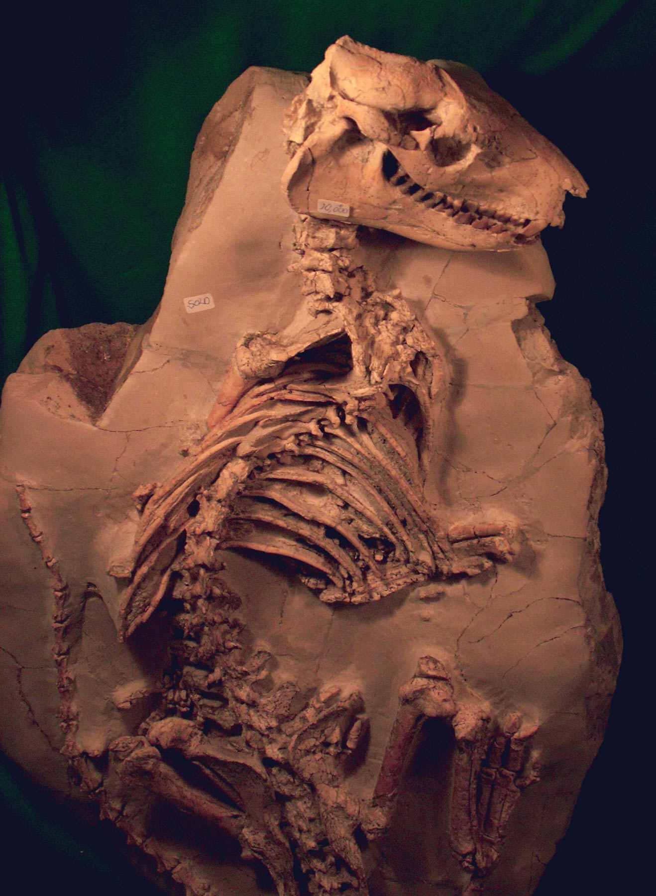 | Description | Merycoidodon? A common display of fascinating fossils, this one is marked "sold", at a dealer room inside the Inn Suites venue of the Tucson Gem & Mineral Show. |