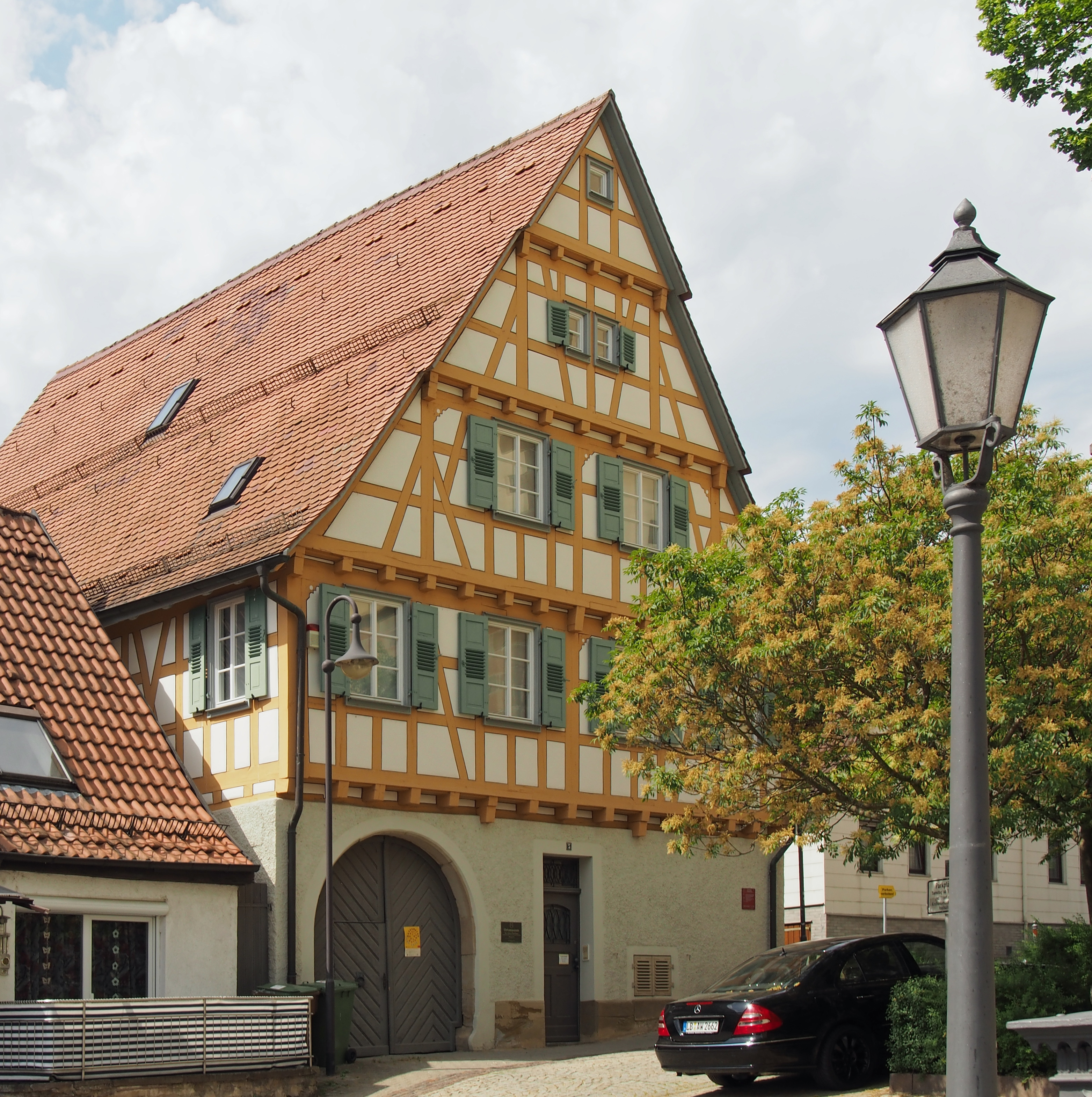 English: The former Frühmeßhaus (residence for the Catholic priest) in Schwieberdingen in the federal state Baden-Württemberg in Germany. The building is used today as a local museum. |