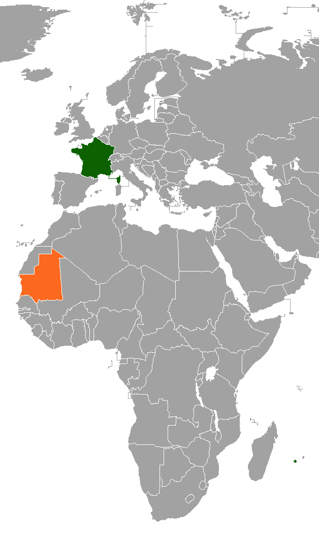 English: Map indicating locations of France and Mauritania |