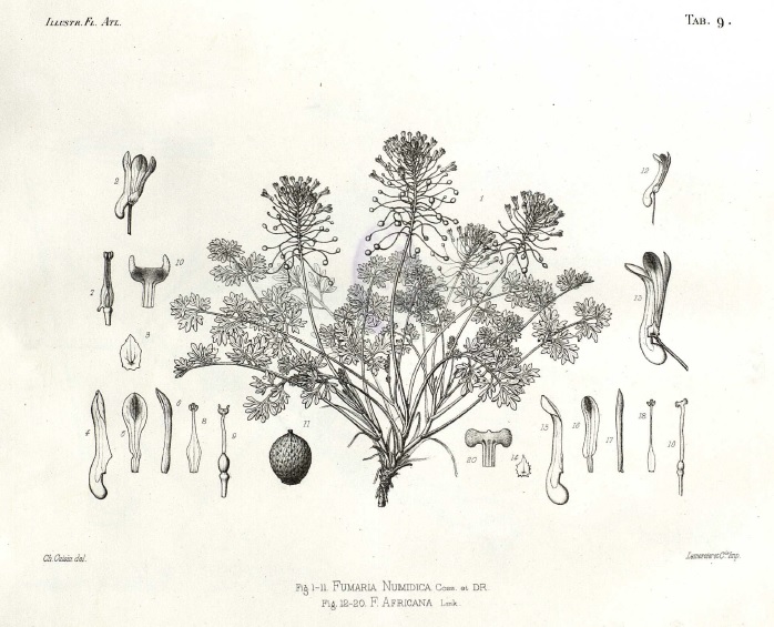 Français : Lithographie de Fumaria numidica renommée Rupicapnos numidica |