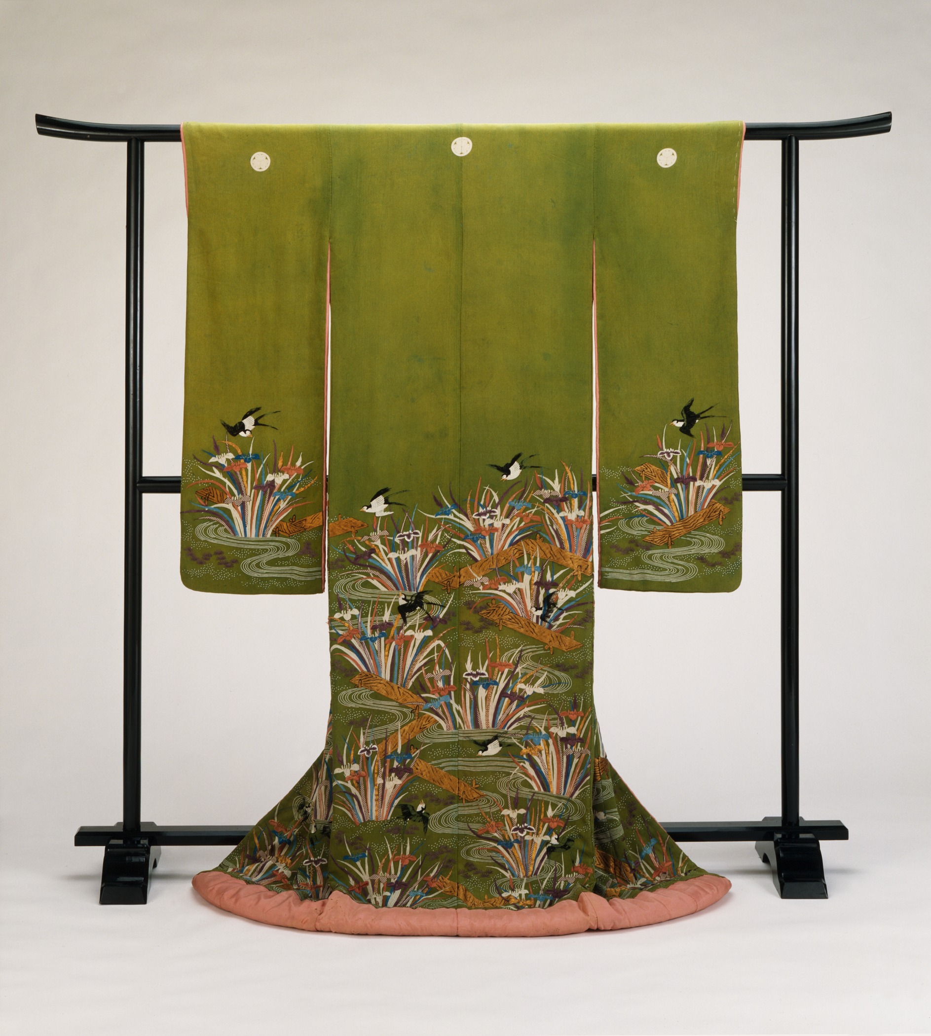 ملف:Furisode with Plank Bridges (Yatsuhashi), Irises, and Swallows LACMA M.90.8.jpg