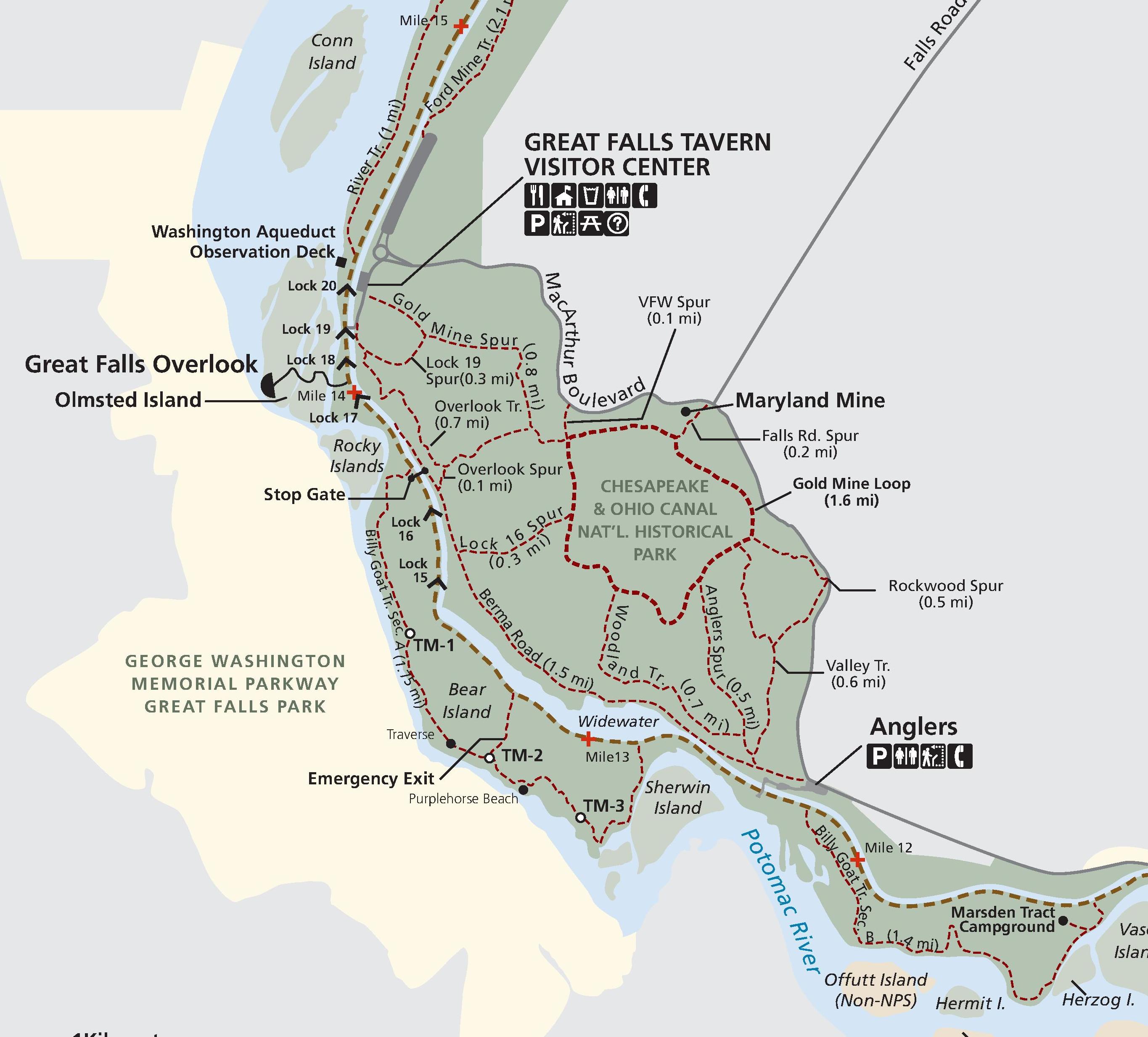 English: Map of trails in the Great Falls area, from NPS. |