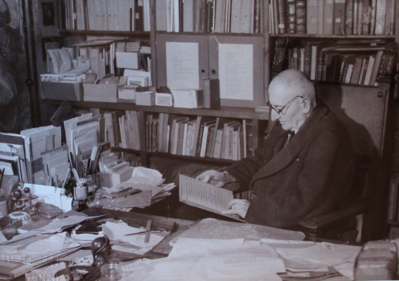 Italiano: Gaetano Ballardini al lavoro nel suo studio al Museo. |