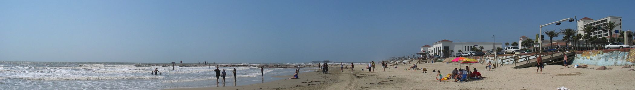 English: Panorama of beach at Gavleston, Texas |