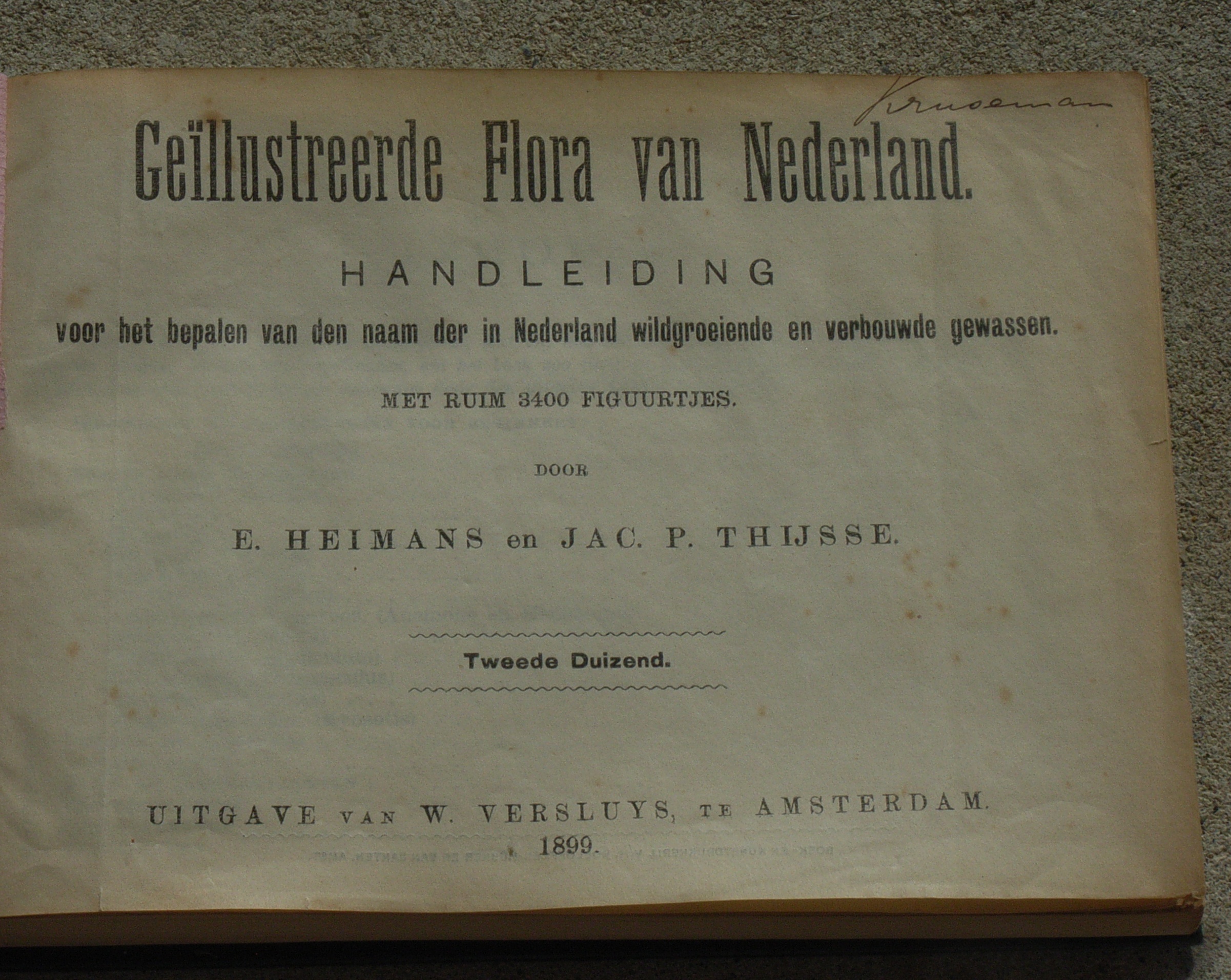 (Dutch) English: Title page of ten first edition of Heimans, E., Thijsse, Jac. P., Geïllustreerde Flora van Nederland. Amsterdam: Versluys. |