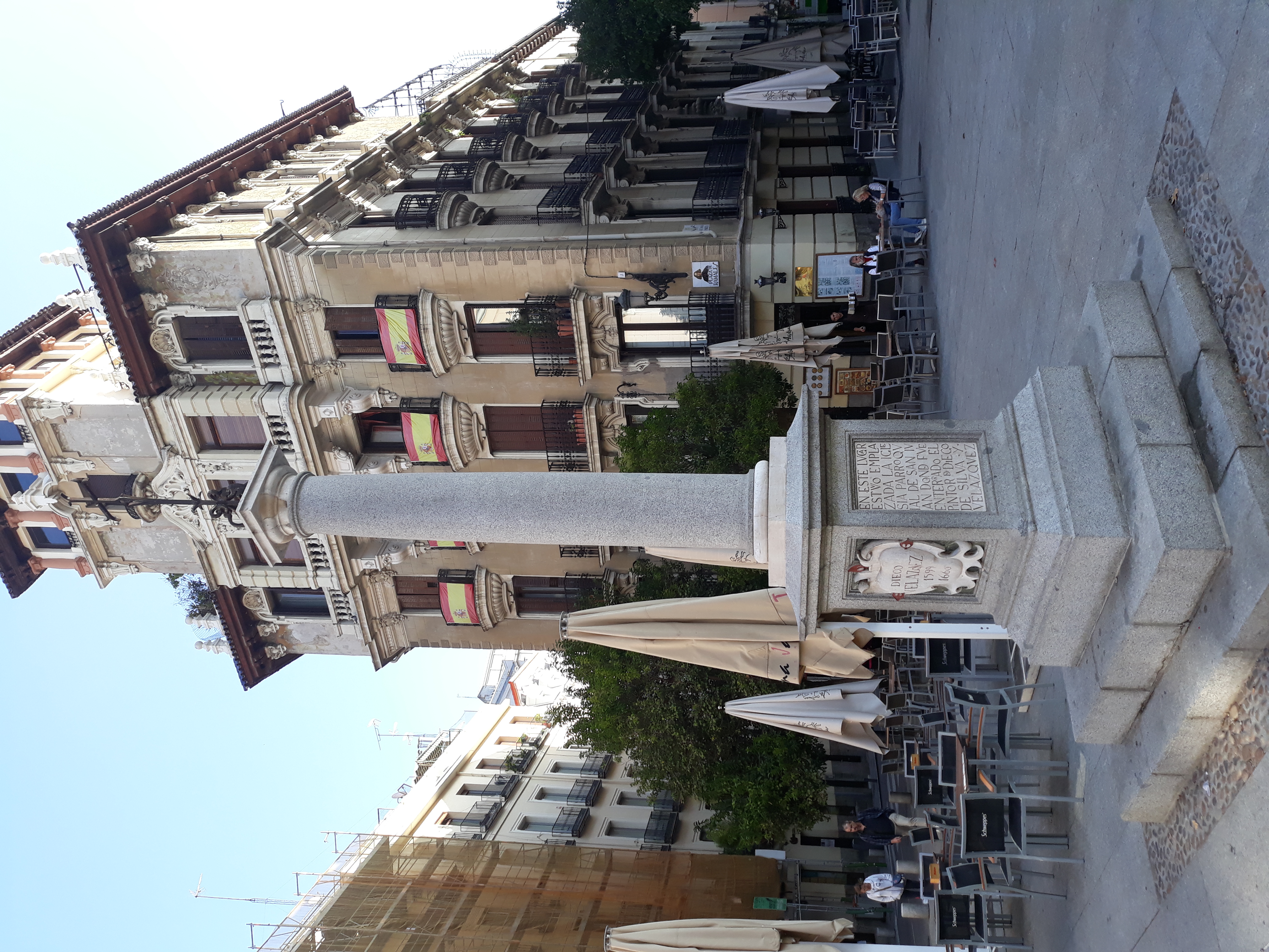 Deutsch: Gedenksäule für das Gab des spanischen Malers Diego Velazquez in der abgerissenen Kirche San Juan auf der Plaza de Ramales in Madrid. |