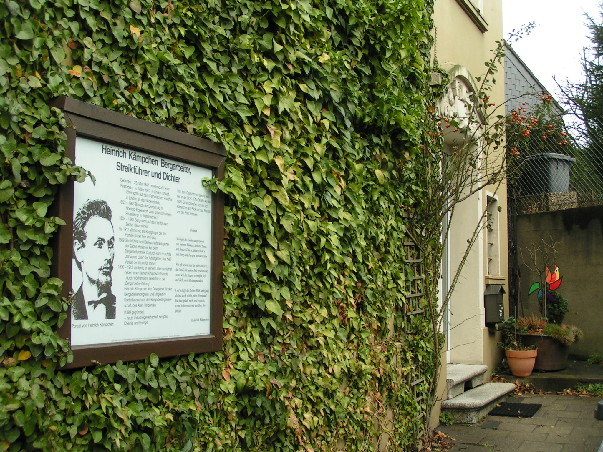 - ملف:Flag of Germany and Austria.svg : Gedenktafel für den Bergarbeiter-Dichter Heinrich Kämpchen an seinem Wohnhaus Dr.-C.-Otto-Str 46, Bochum-Linden