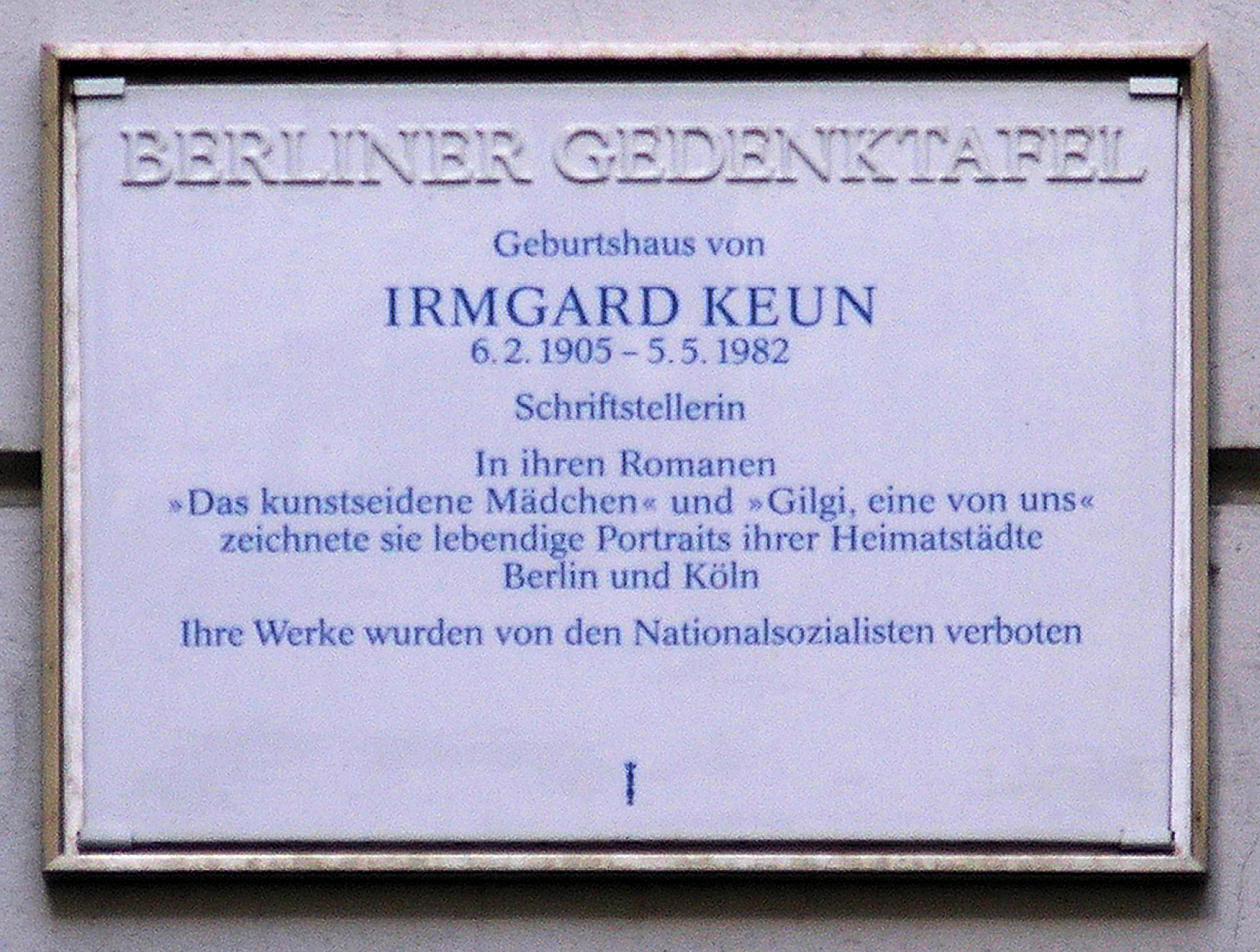 ملف:Gedenktafel Meinekestr 6 Irmgard Keun.JPG
