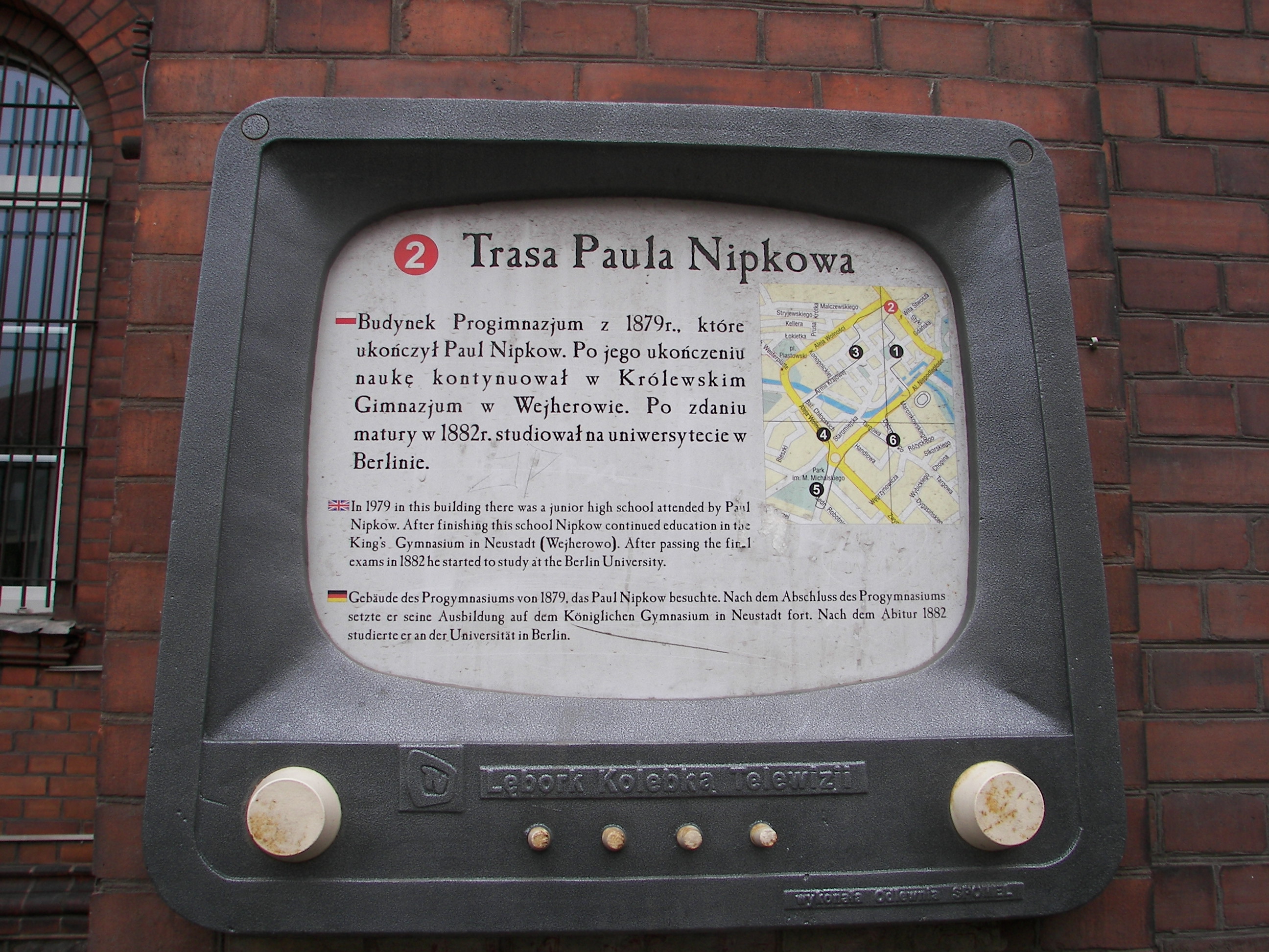 ملف:Gedenktafel für Paul Nipkow in polnischer und deutscher Sprache.JPG
