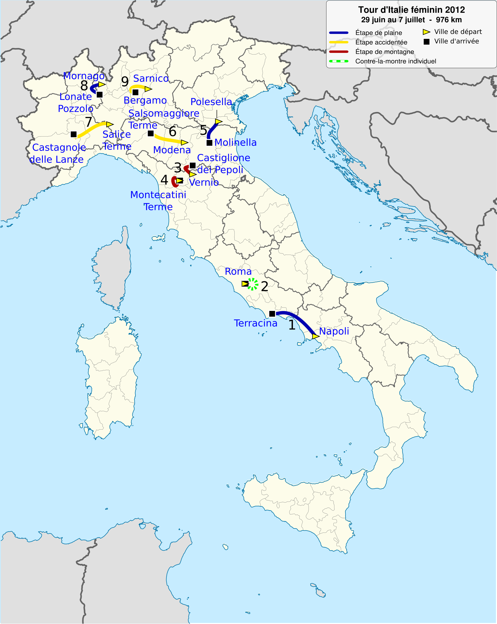 English: Overview map of Giro donne 2012 |