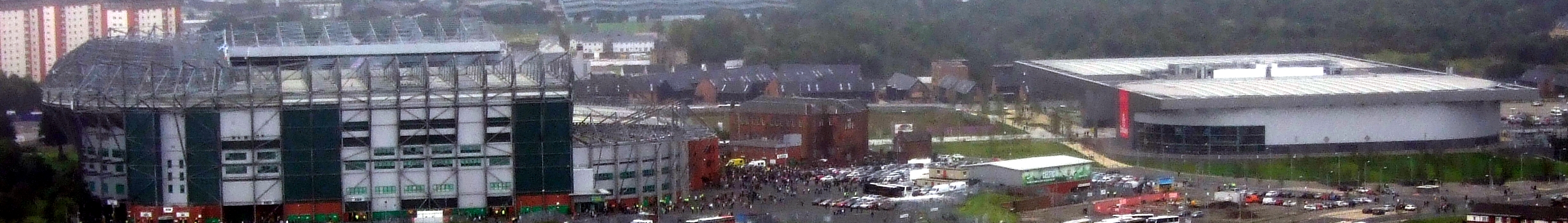 English: Celtic park and Sir Chris Hoy Velodrome seen from 29th floor of 51 Whitevale Street. Own photo colour adjusted and cropped to create a Wikivoyage banner. |