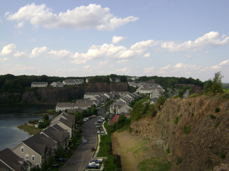 English: An abandoned quarry on Goffle Hill (First Watchung Mountain) converted into a residential development. Other condominium developments outside the quarry can be seen in the background. |