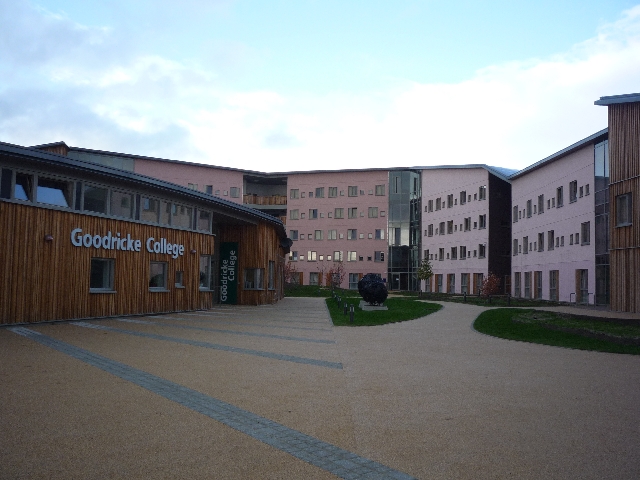 English: Goodricke College reception The first buildings to be completed on the new university campus known as Heslington East. Goodricke college is the first of the old colleges to move from the west campus. Its old buildings are now split between James and Vanbrugh. |