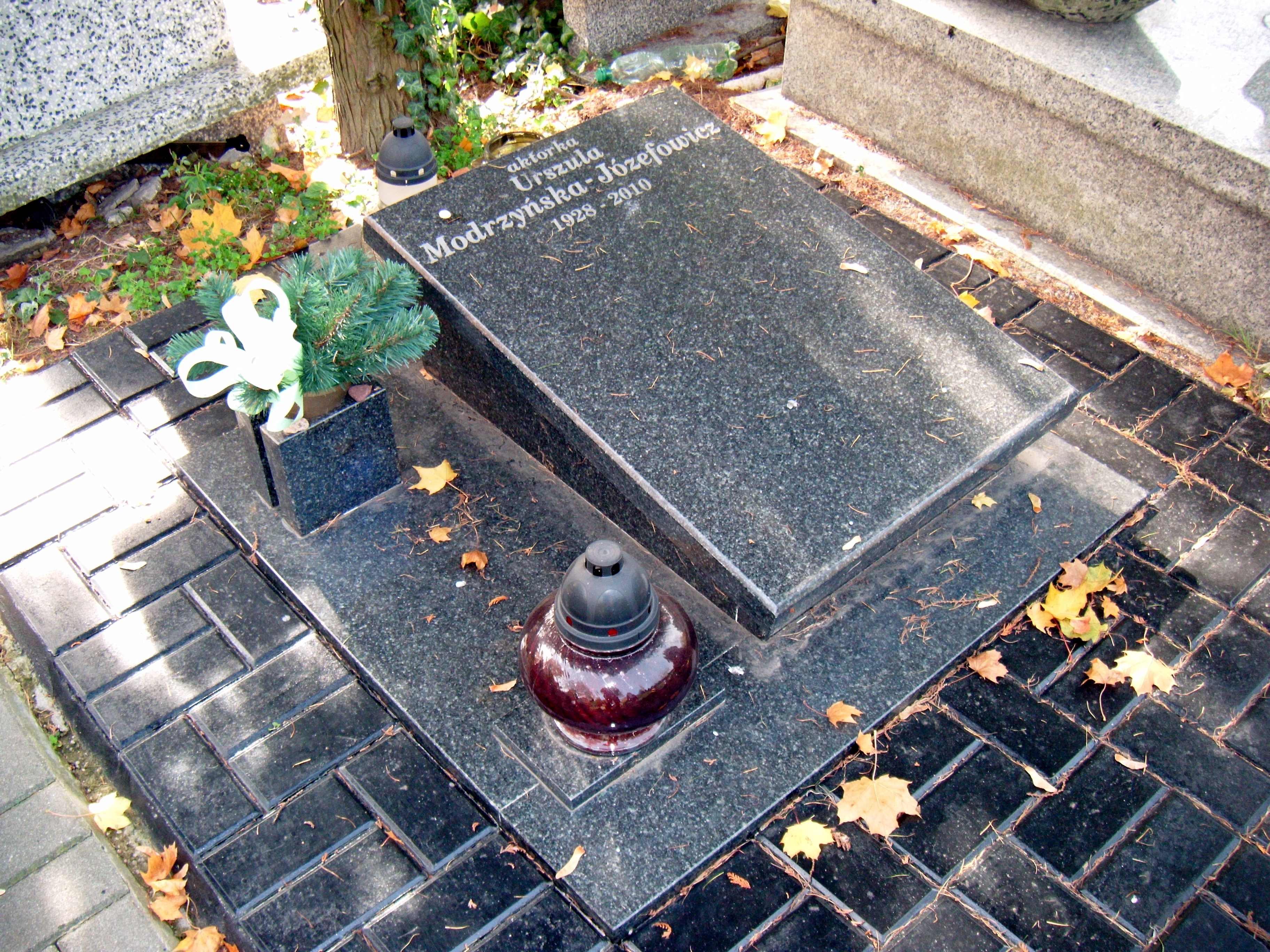 Polski: Grób Urszuli Modrzyńskiej na cmentarzu komunalnym Doły w Łodzi. |