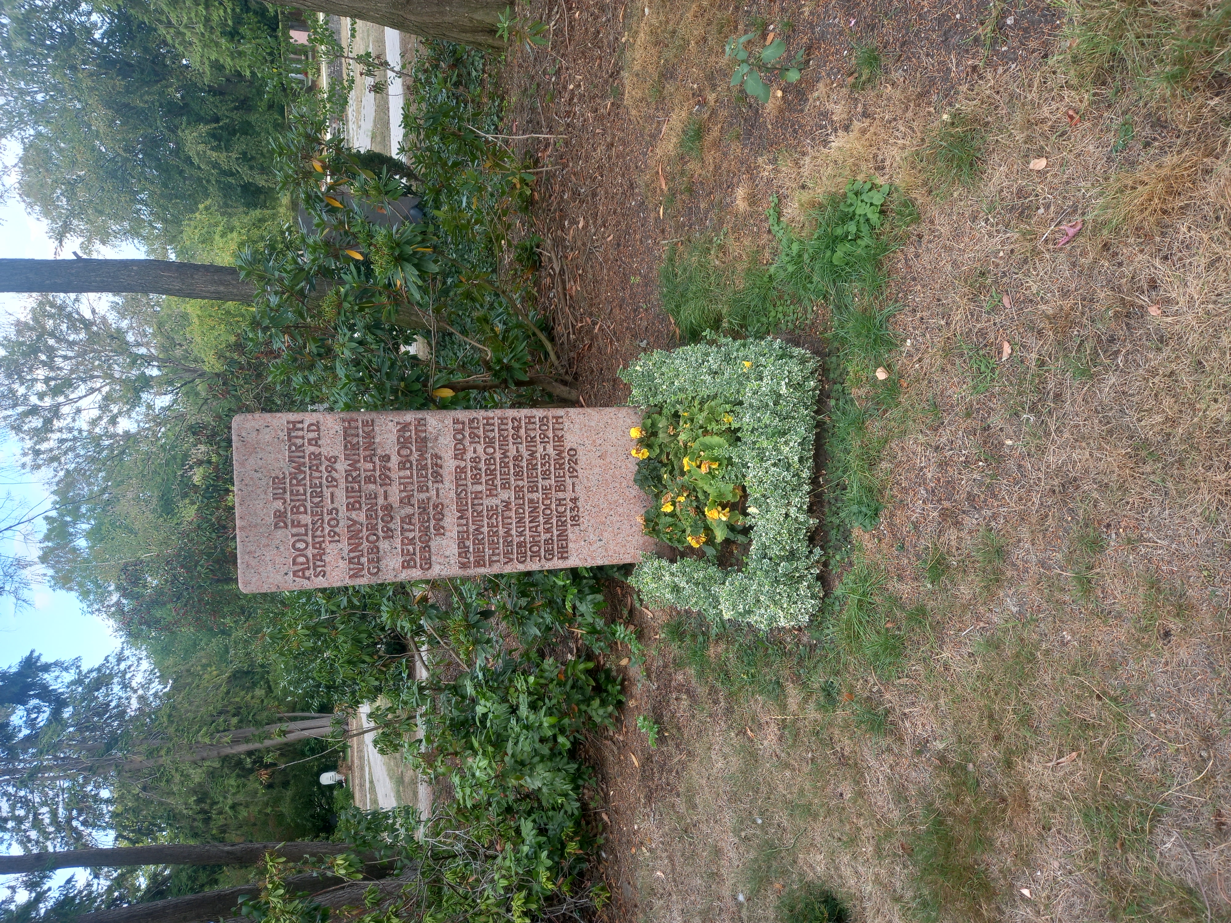 Deutsch: Das Grab des deutschen Politikers und Beamten (Staatssekretär, Landrat) Adolf Bierwirth und seiner Ehefrau Nanny geborene Blanke im Familiengrab auf dem Stadtfriedhof Stöcken in Hannover. |