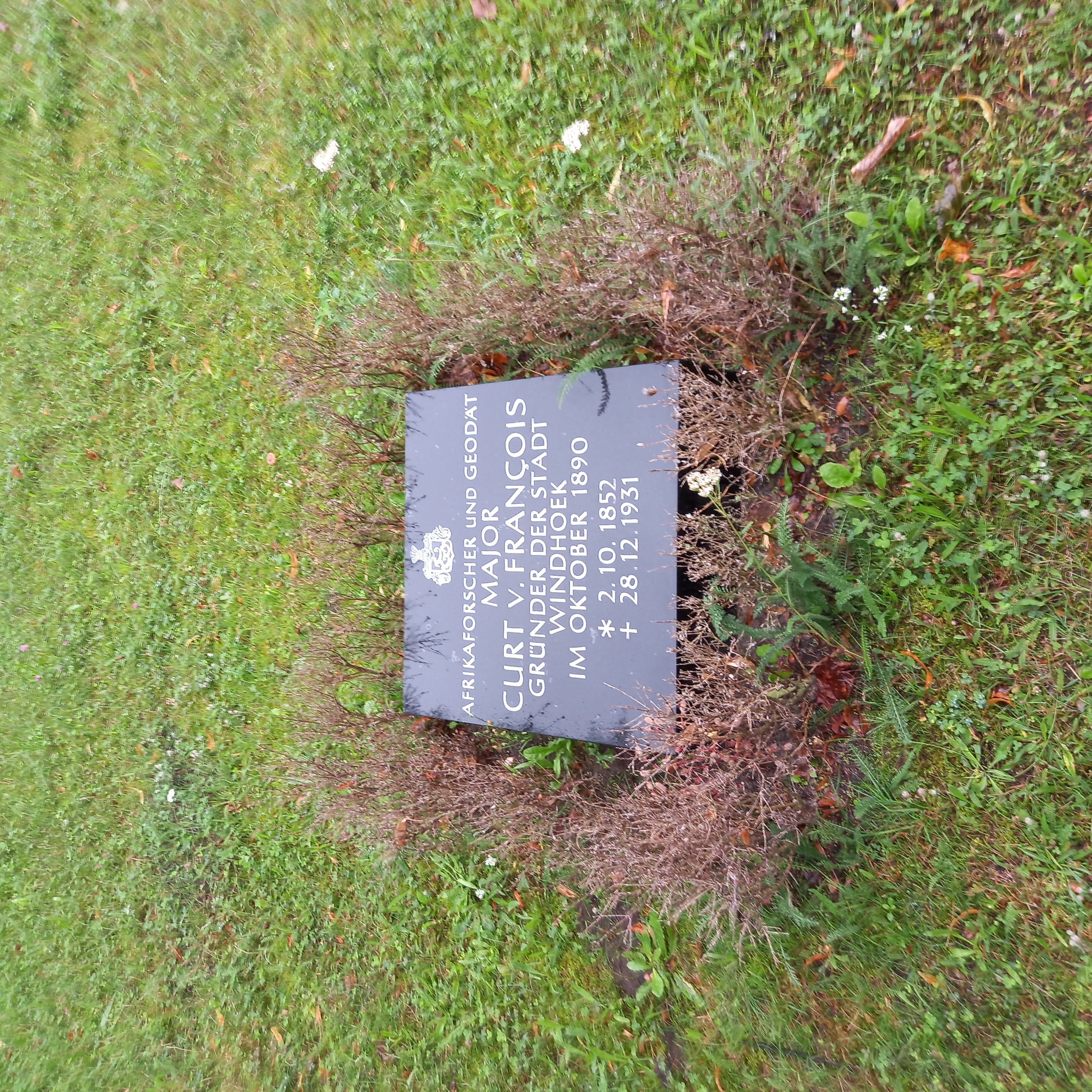 Deutsch: Das Grab des deutschen Offiziers, Afrikaforschers und Geodäten Curt von Francois (Gründer Windhuk) auf dem Invaildenfriedhof in Berlin. |