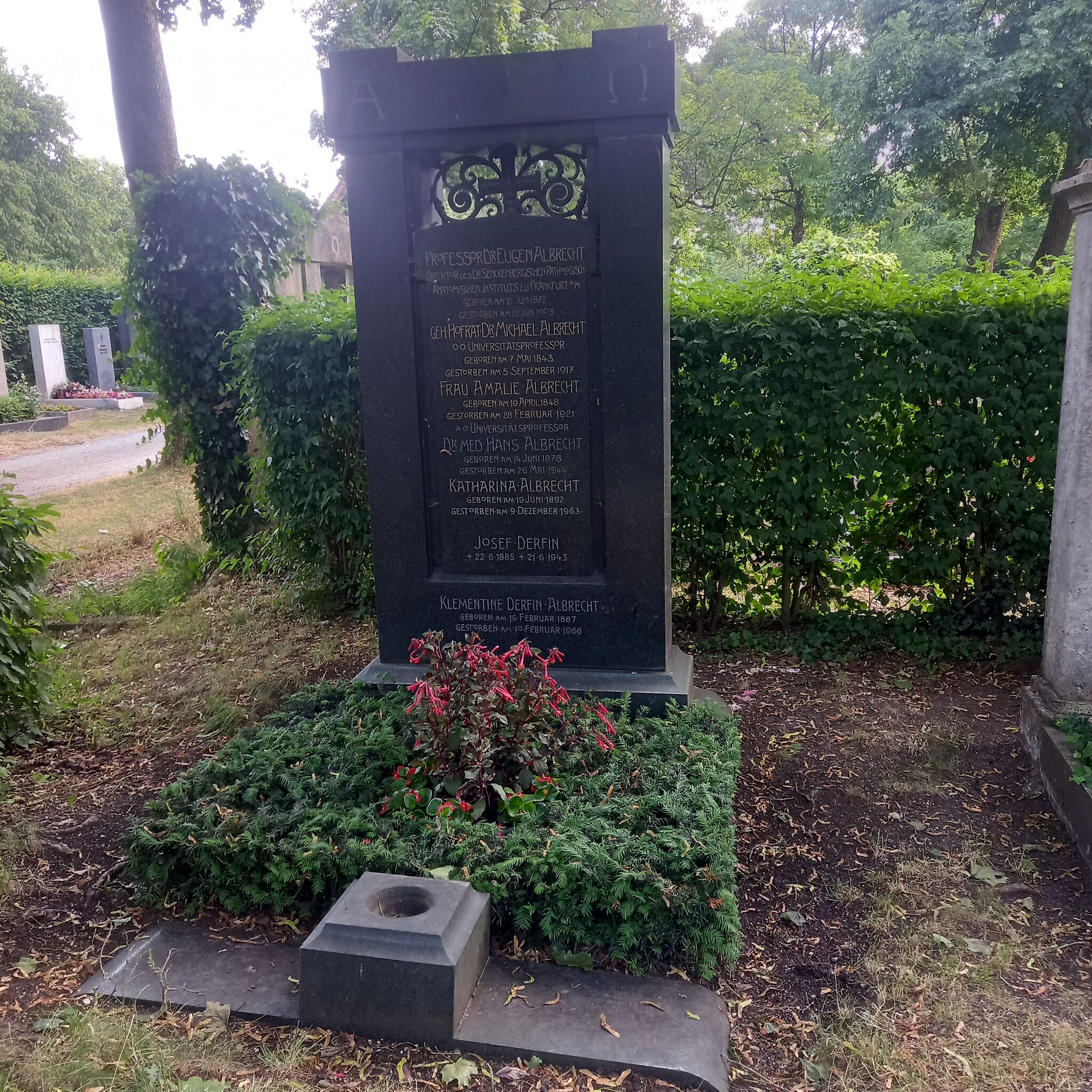 Deutsch: Das Grab des deutschen Pathologen Eugen Albrecht und seiner Eltern, des Tierarztes Michael Albrecht und seiner Ehefrau Amalie geborene Hofer, im Familiengrab auf dem Nordfriedhof München. |