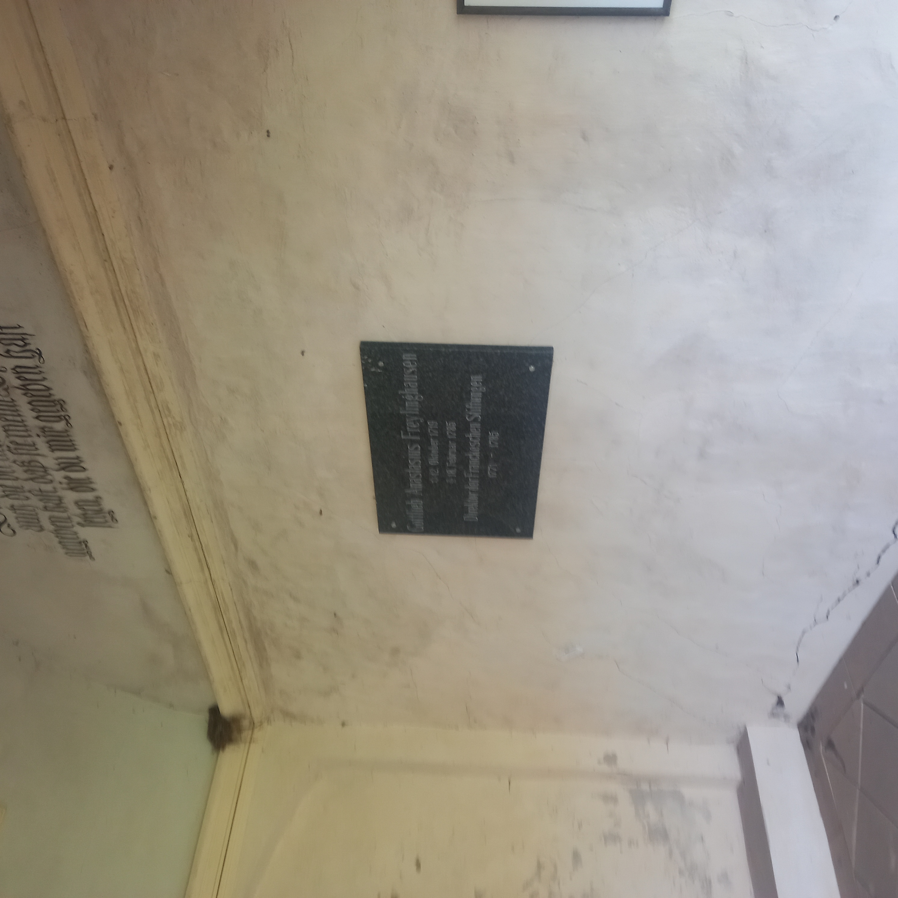 Deutsch: Das Grab des deutschen evangelischen Theologen Gottlieb Anastasius Freylinghausen in der Familiengruft Francke auf dem Stadtgottesacker in Halle an der Saale. |