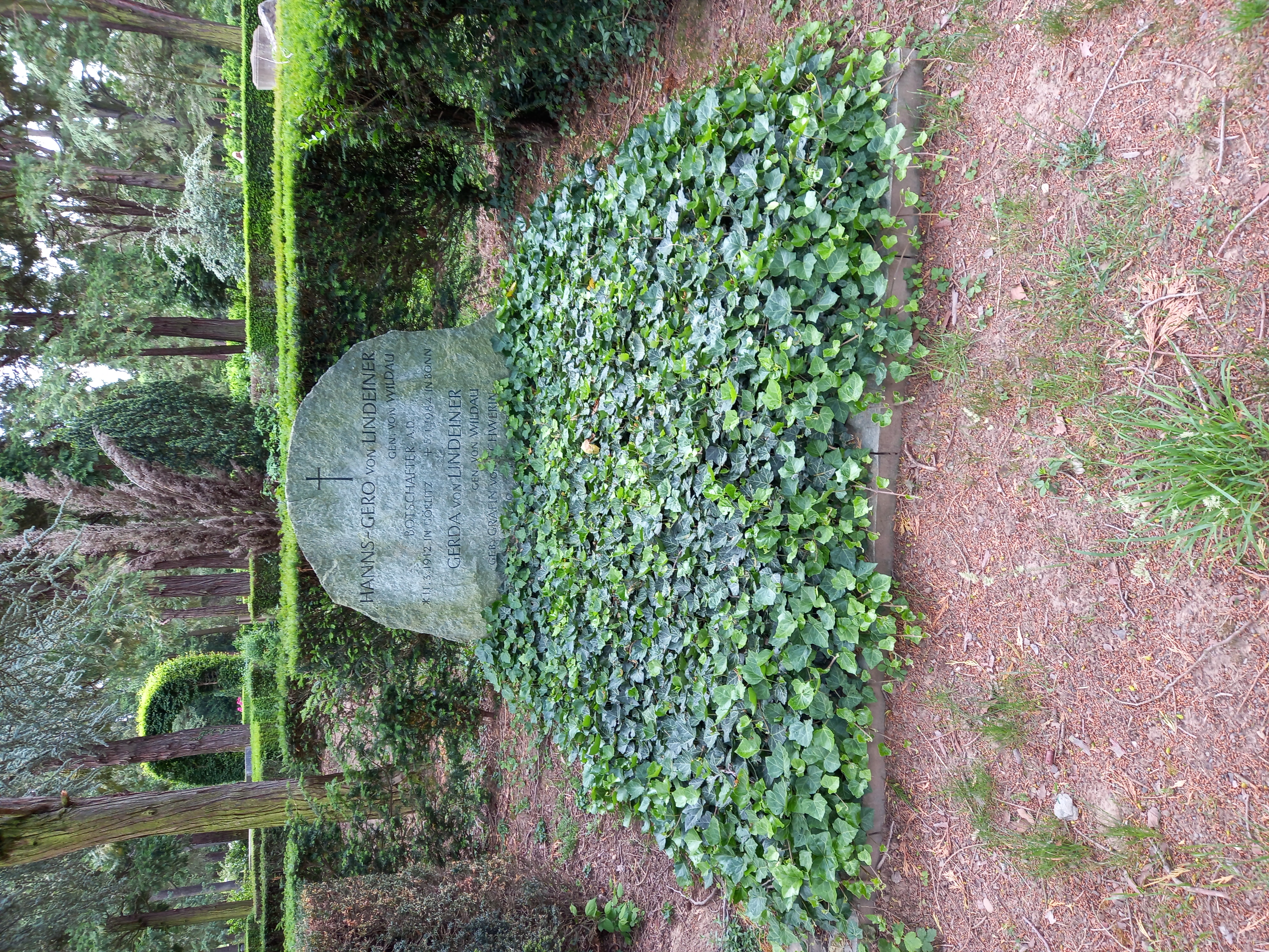 Deutsch: Das Grab des deutschen Politikers und Diplomaten Hanns-Gero von Lindeiner genannt von Wildau und seiner Ehefrau Gerda geborene Gräfin von Schwerin im Familiengrab auf dem Südfriedhof Bonn. |