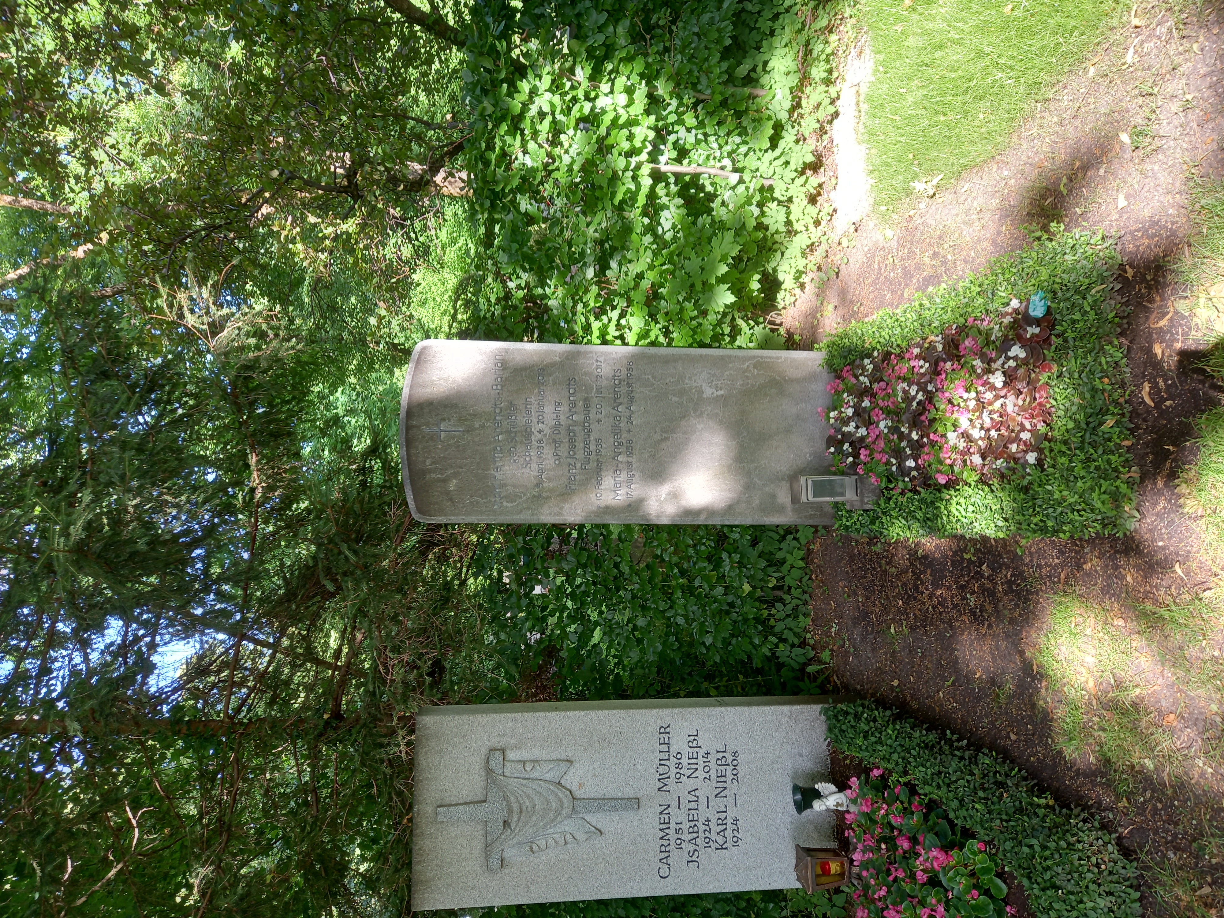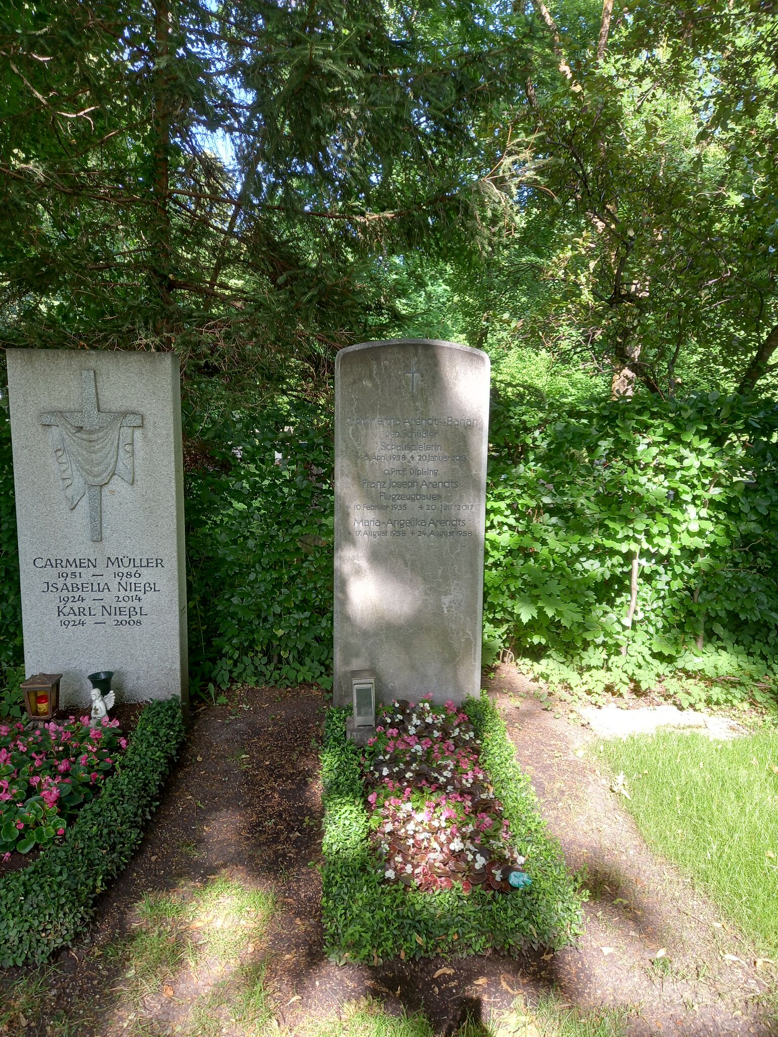 Deutsch: Das Grab der deutschen Schauspielerin Hertha Arendts-Barian geborene Schüßler und ihres Ehemannes, des Flugzeugbauers Franz Joseph Arendts im Familiengrab auf dem Friedhof am Perlacher Forst in München. |