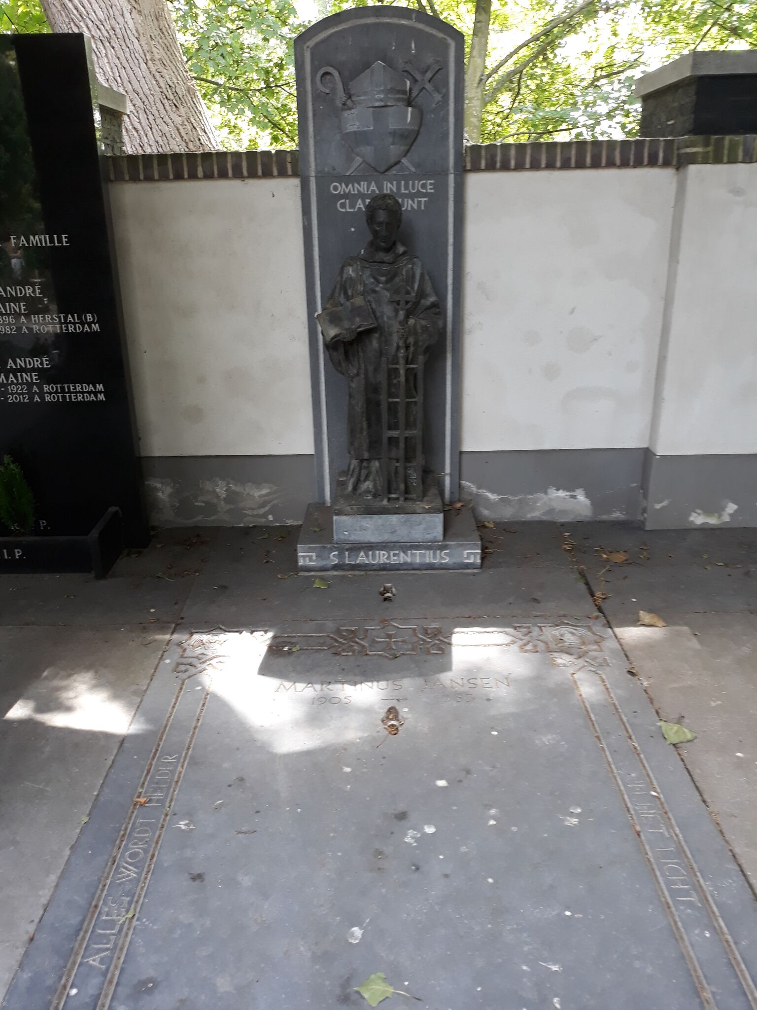 Deutsch: Das Grab des ersten katholischen Bischofs von Rotterdam, Martinus Jansen, auf dem katholischen Laurentiusfriedhof in Rotterdam. |