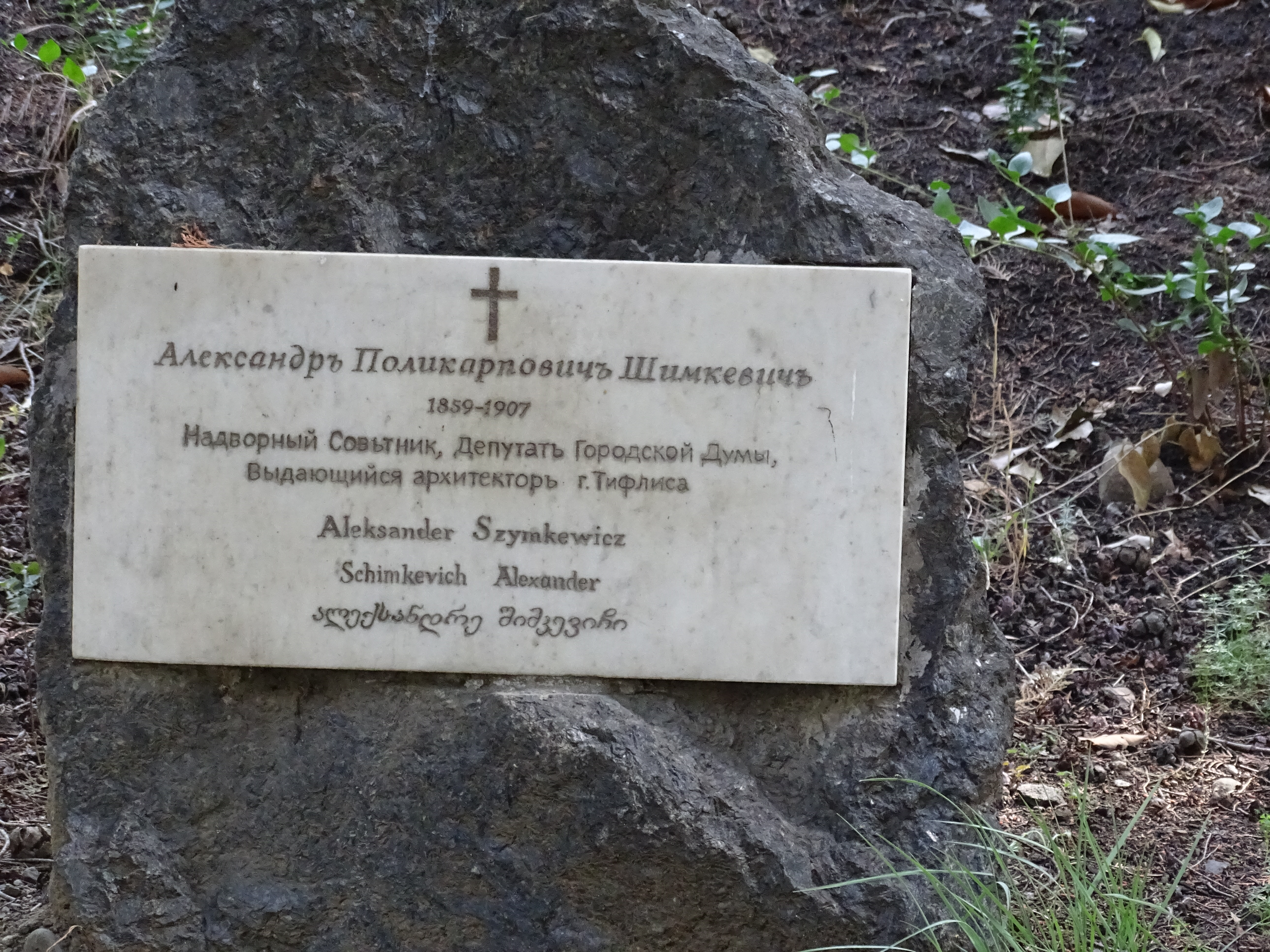 Deutsch: Grabtafel des polnischstämmigen Architekten Aleksander Szymkiewicz Aleksander Szymkiewicz gelegen im Bereich der lutherischen Versöhnungskirche in Tiflis