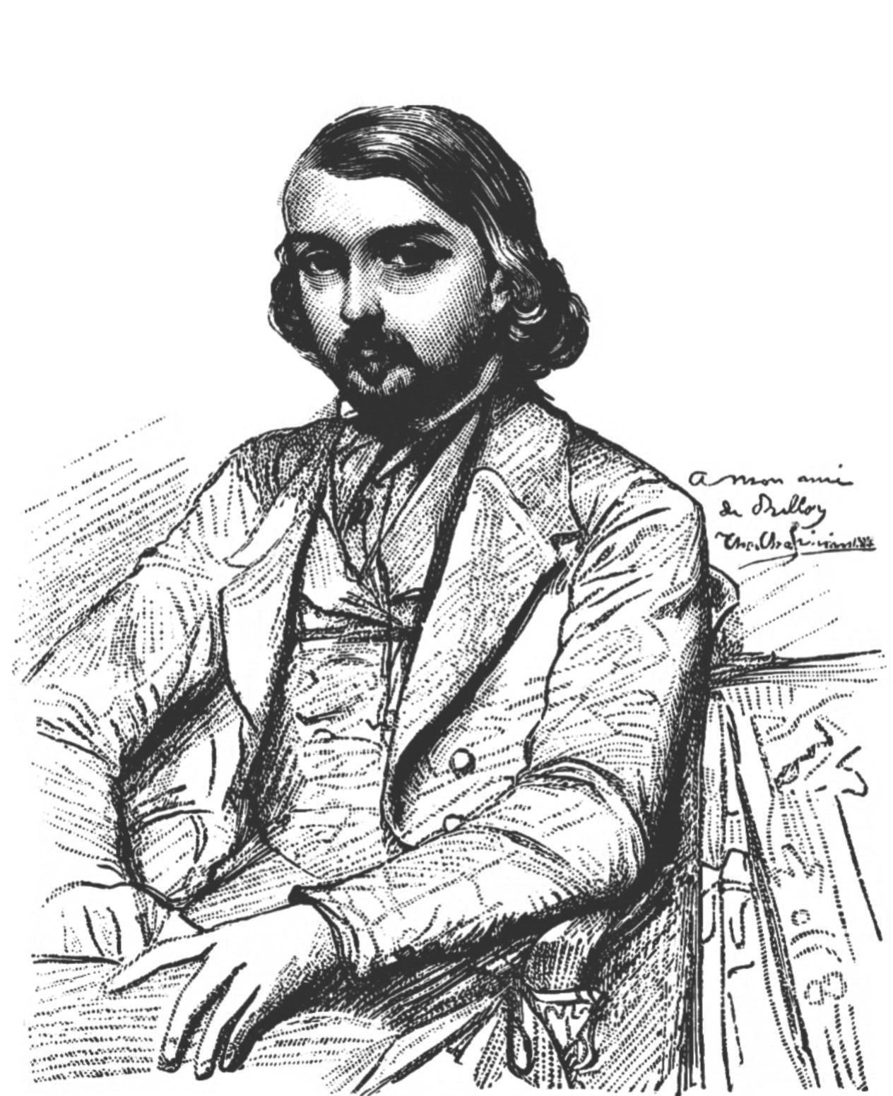 Français : Dessin de la collection de Georges-Gustave Toudouze : portrait de Frédéric de Gramont par Chassériau, avec une dédicace de l'artiste à Auguste de Belloy. |