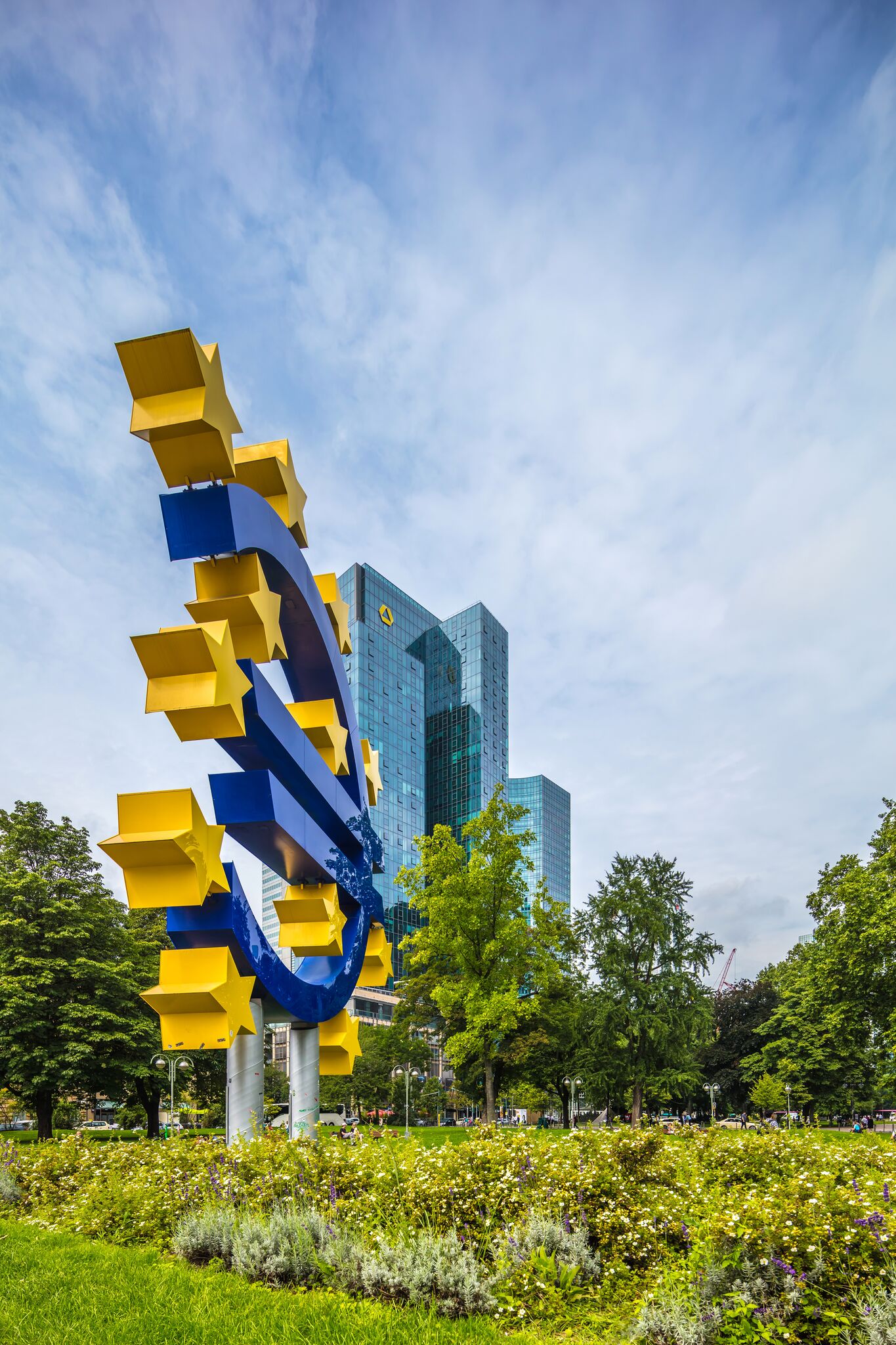 Deutsch: Euro-Skulptur (Willy-Brandt-Platz) und Gallusanlage (Park), Frankfurt am Main (08/2017) |