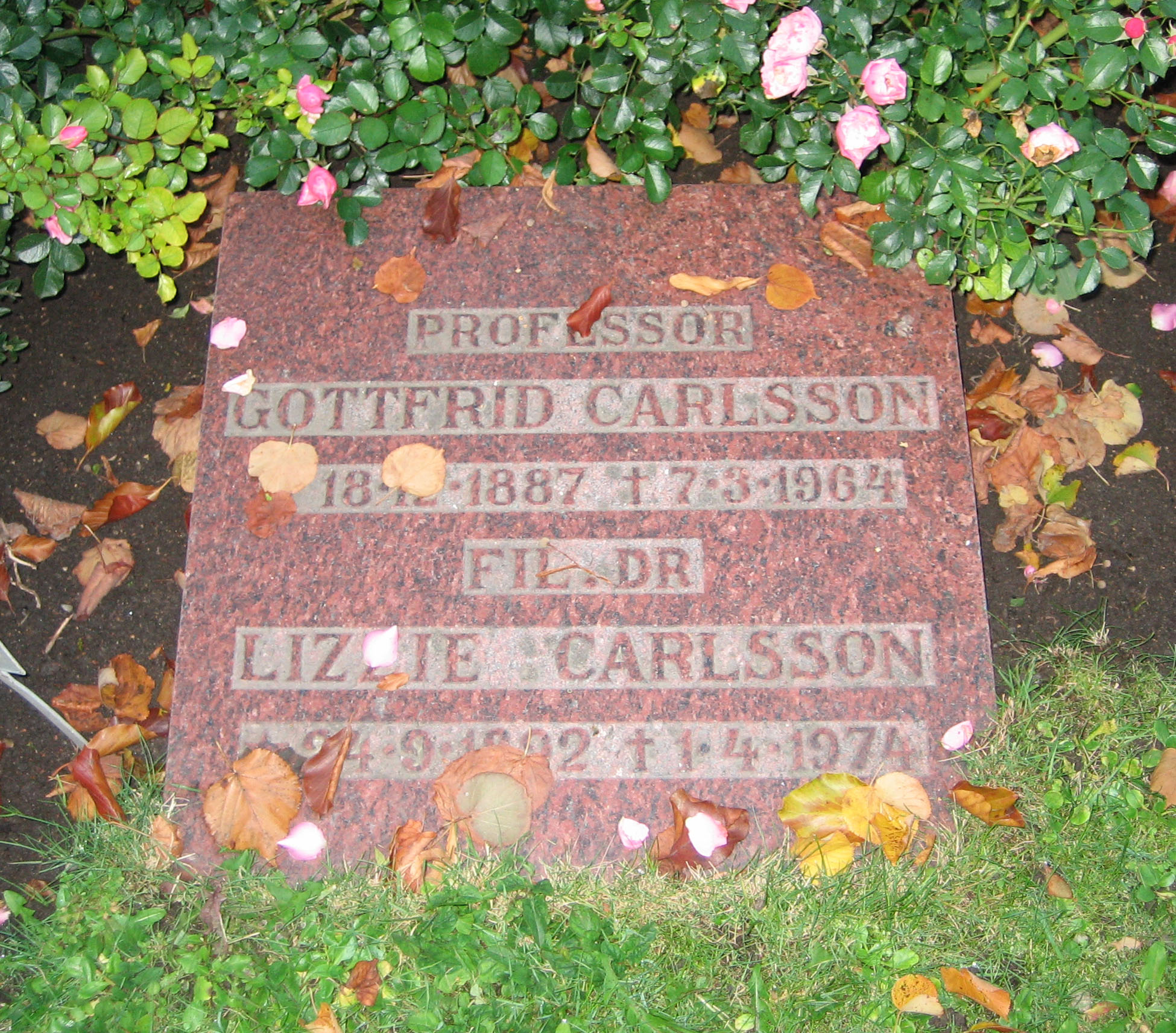 English: Grave of swedish professor Gottfrid Carlsson (1887-1964). Photo taken 2008-10-07 at Norra kyrkogården, Lund, Sweden by the uploader. |