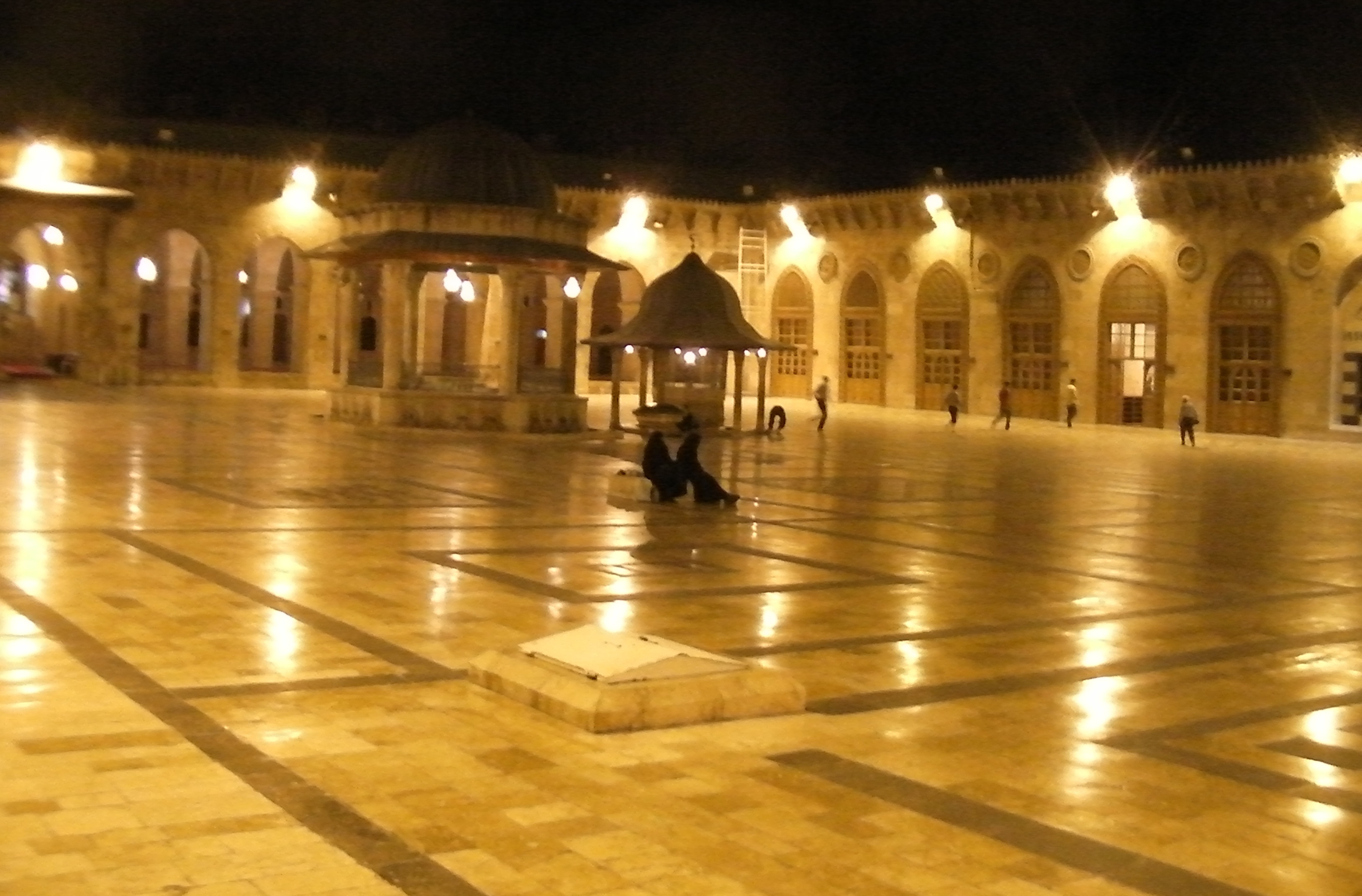 ملف:Great Mosque of Aleppo courtyard at night.jpg
