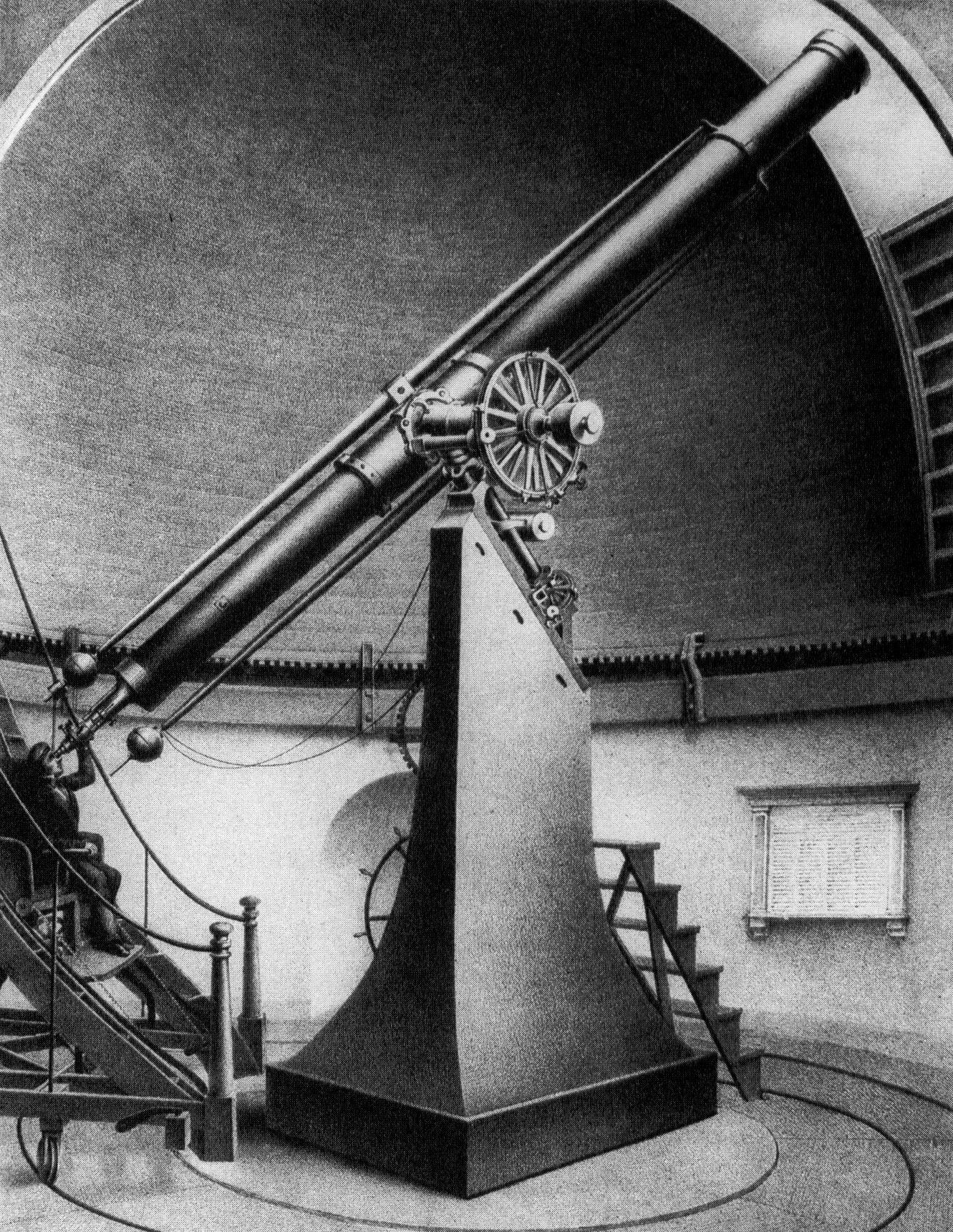 English: Sketch of the 15-inch Great Refractor telescope at Harvard College Observatory |