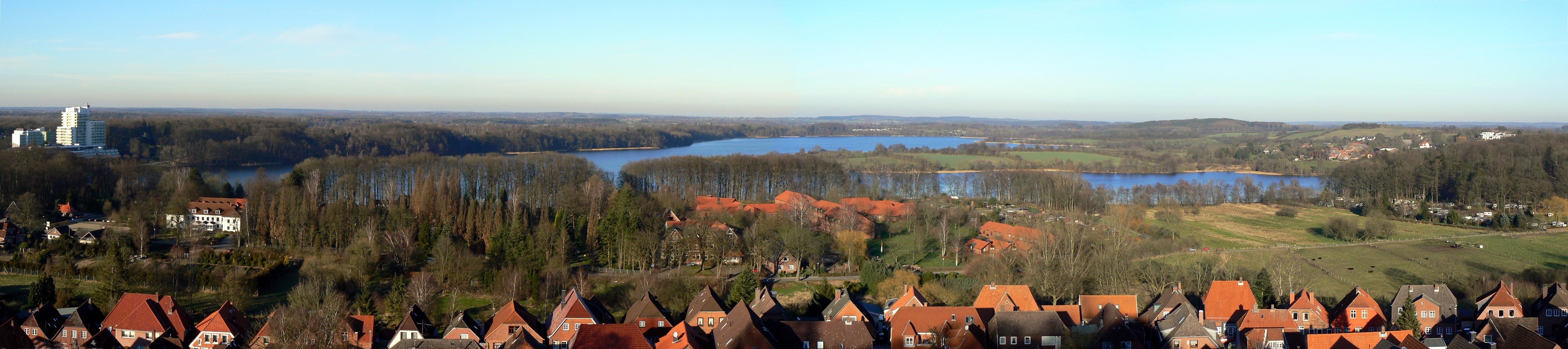 Deutsch: Blick vom Kalkberg in Bad Segeberg auf den Großen Segeberger See. Panorama aus 4 Einzelbildern. |