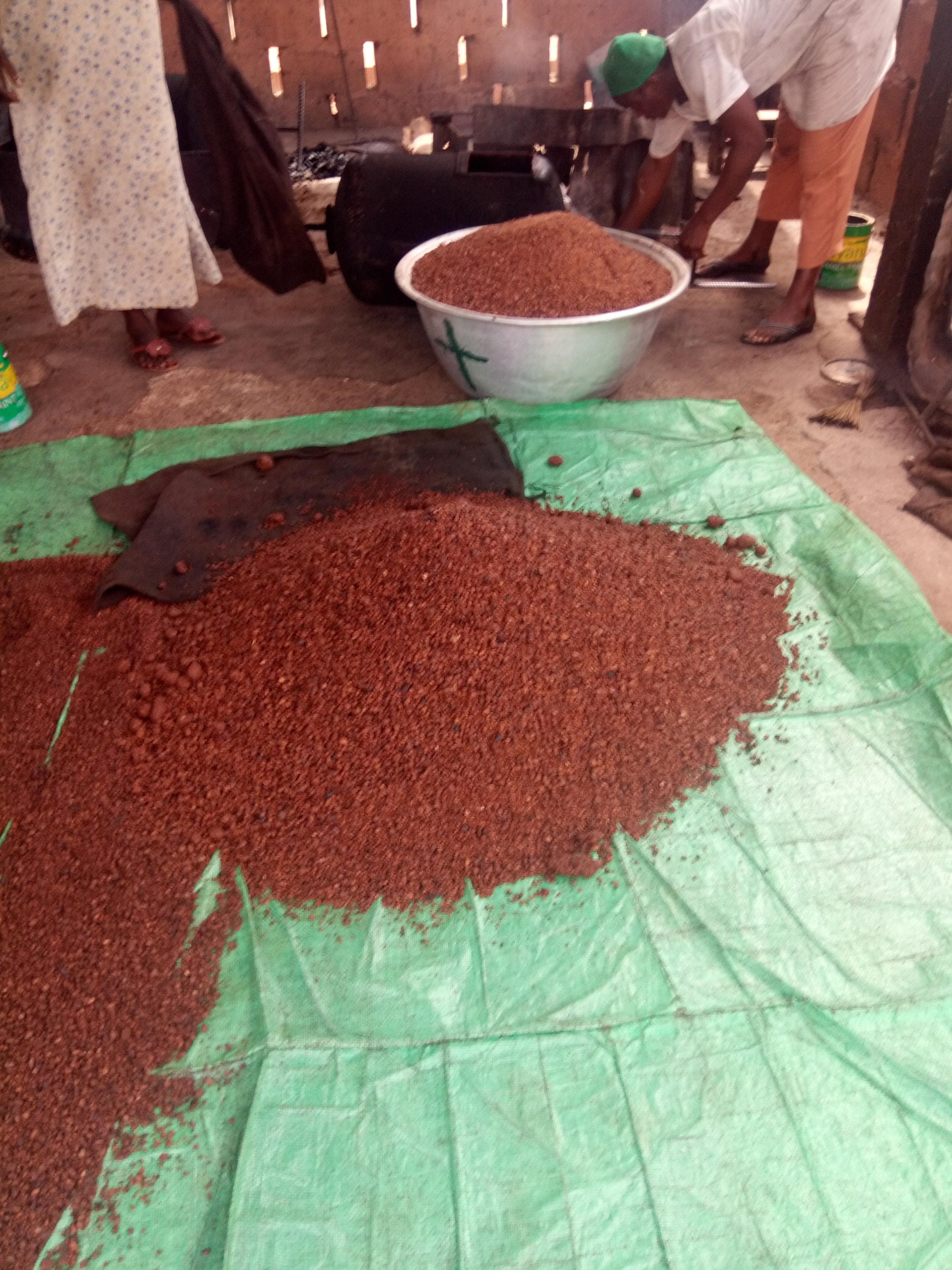 English: Ground sheanut to be processed into sheabutter