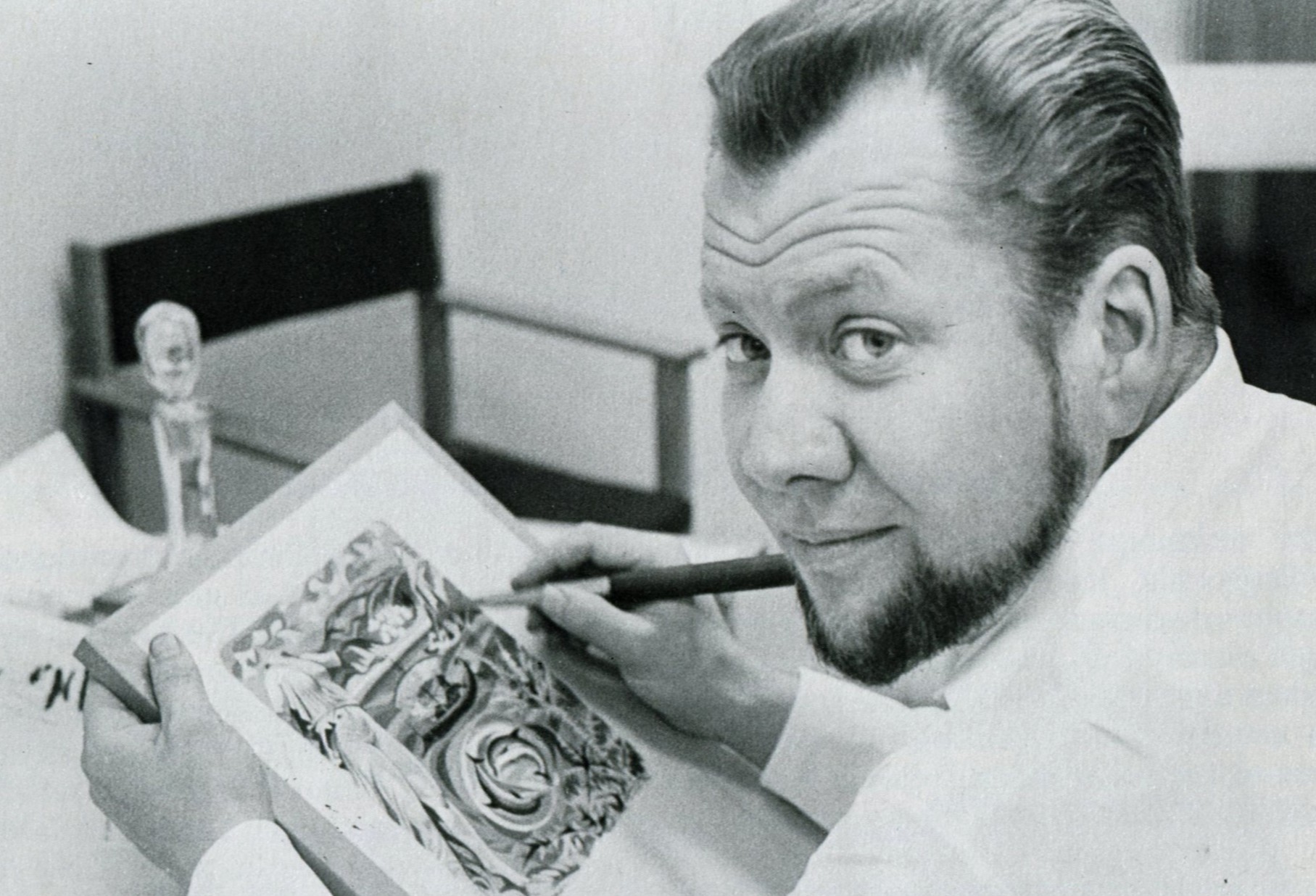 Svenska: Illustratör och tecknare Gunnar Brusewitz med diplomet för Nobelpriset i litteratur 1963 |