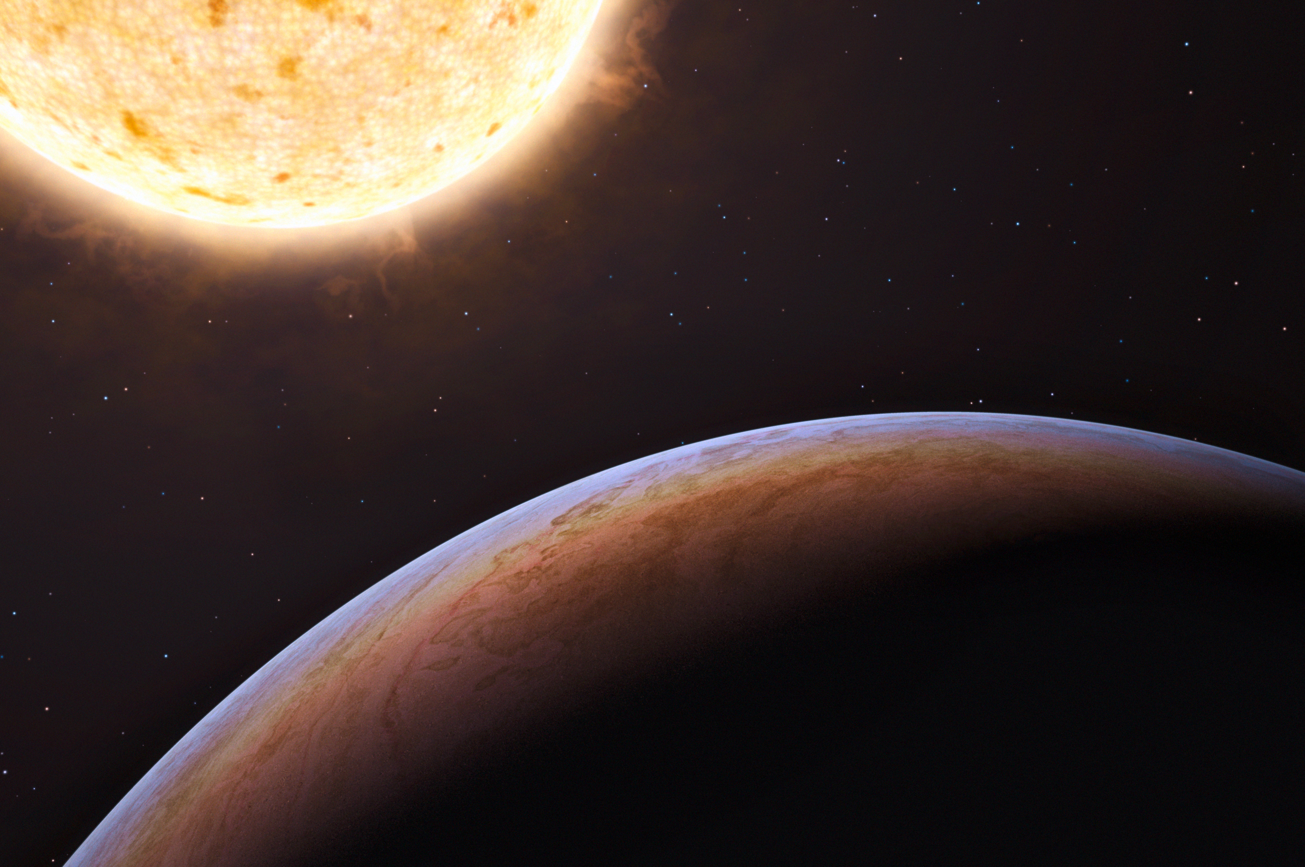 English: This artist’s impression shows HIP 13044 b, an exoplanet orbiting a star that entered our galaxy, the Milky Way, from another galaxy. This planet of extragalactic origin was detected by a European team of astronomers using the MPG/ESO 2.2-metre telescope at ESO’s La Silla Observatory in Chile. The Jupiter-like planet is particularly unusual, as it is orbiting a star nearing the end of its life and could be about to be engulfed by it, giving clues about the fate of our own planetary system in the distant future. |