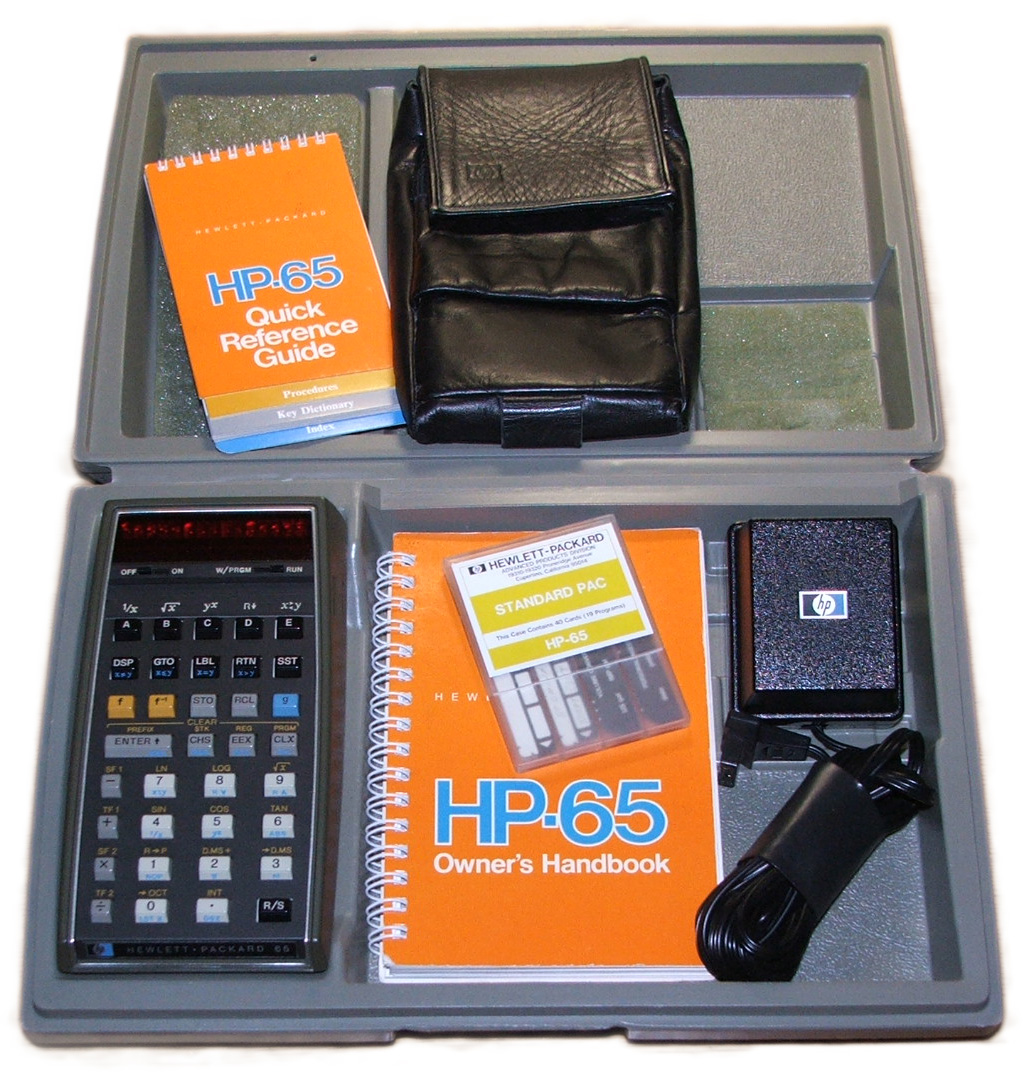 English: Hewlett-Packard 65 calculator in hard case with all original accessories |