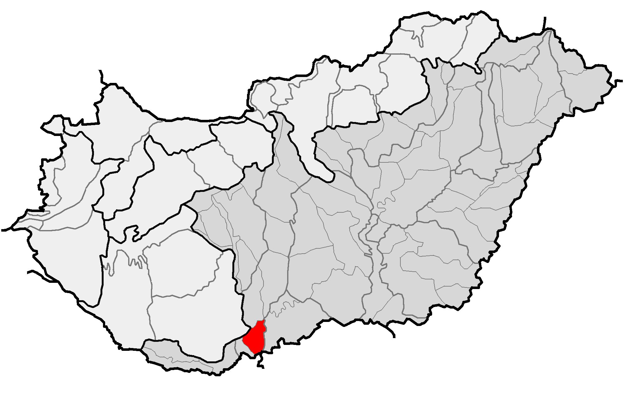 English: Location of geographical microregion of hu:Mohácsi-sziget (red) and macroregion of hu:Alföld (gray) within subdivisions of Hungary. |