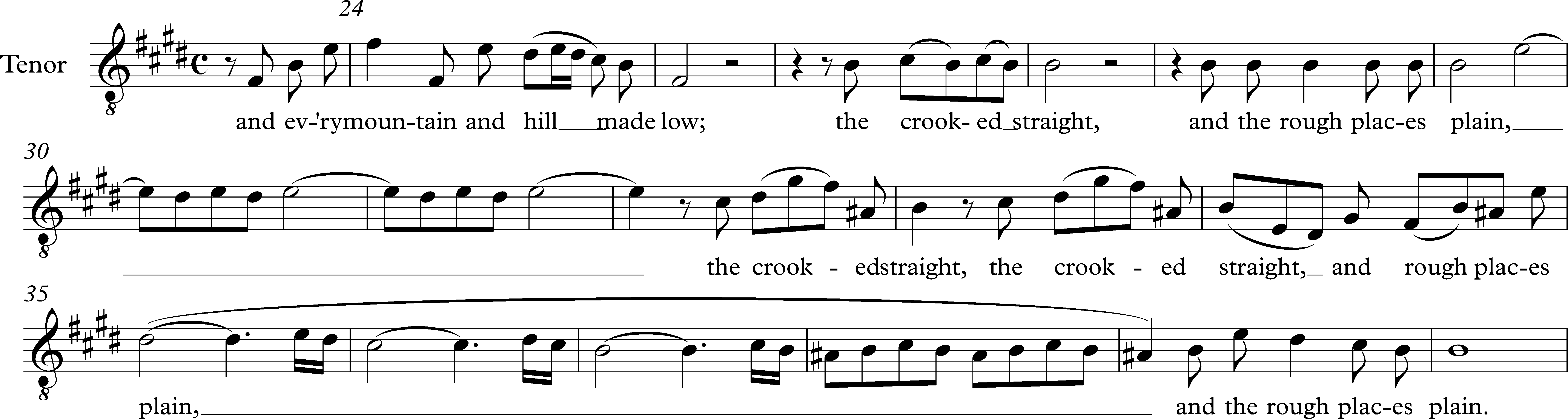 English: Measures 24-41 of the Tenor line of Every valley shall be exalted Handel's Messiah. |