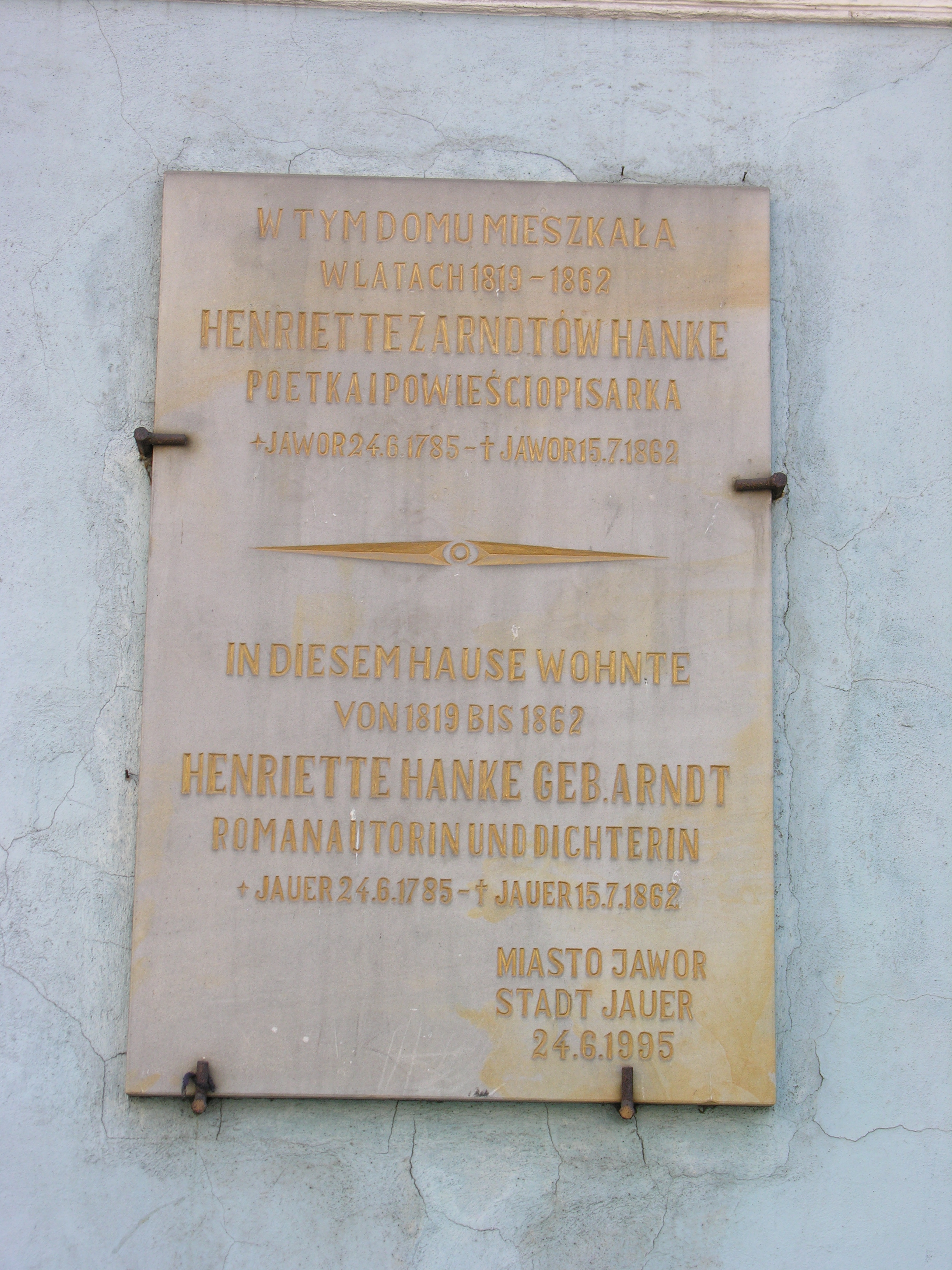 English: Tablica ku czci pisarki Henriette Hanke w Jaworze |