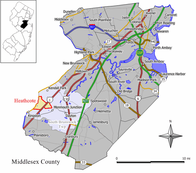 Description: Map of Heathcote CDP in Middlesex County, New Jersey