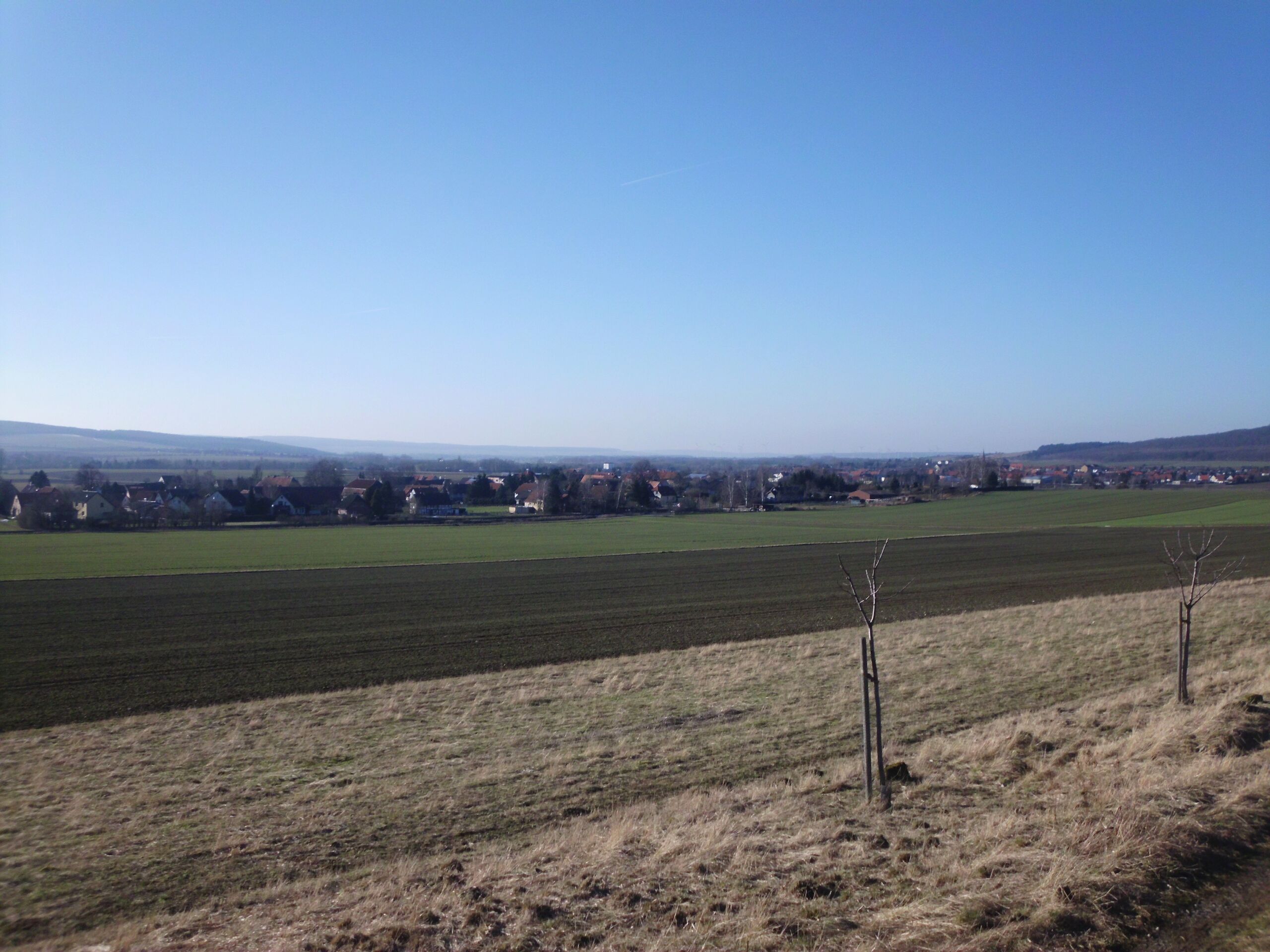 Deutsch: Blick über Felder in Richtung Heißum |