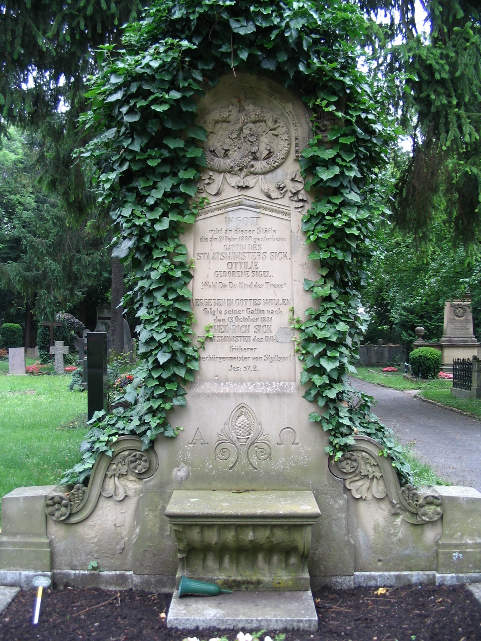 - 2007-07-09 04:14:08 SteFre (2221425 Bytes) {{Information |Beschreibung = Das Grab des Stuttgarter Oberbürgermeisters und späteren württembergischen Innenministers Heinrich von Sick aus dem Jahr 1881 auf dem Stuttgarter Pragfriedhof |Quelle = selbst fotografiert |Urheber = Stefan Frerichs (~~~~)