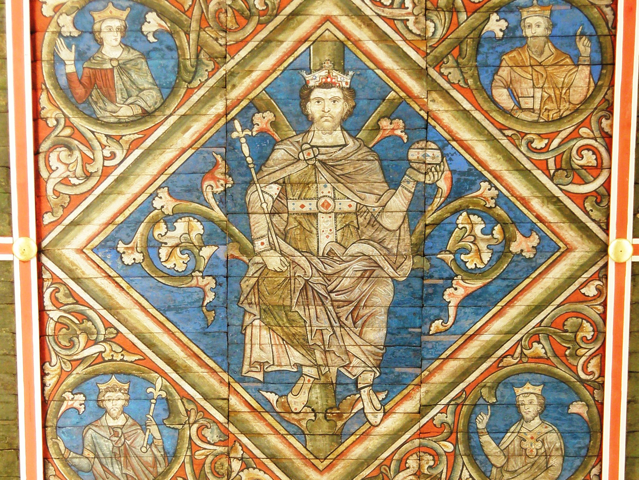 English: Hildesheim, St. Michael's Church, detail of the wooden ceiling picture; king Hiskiah