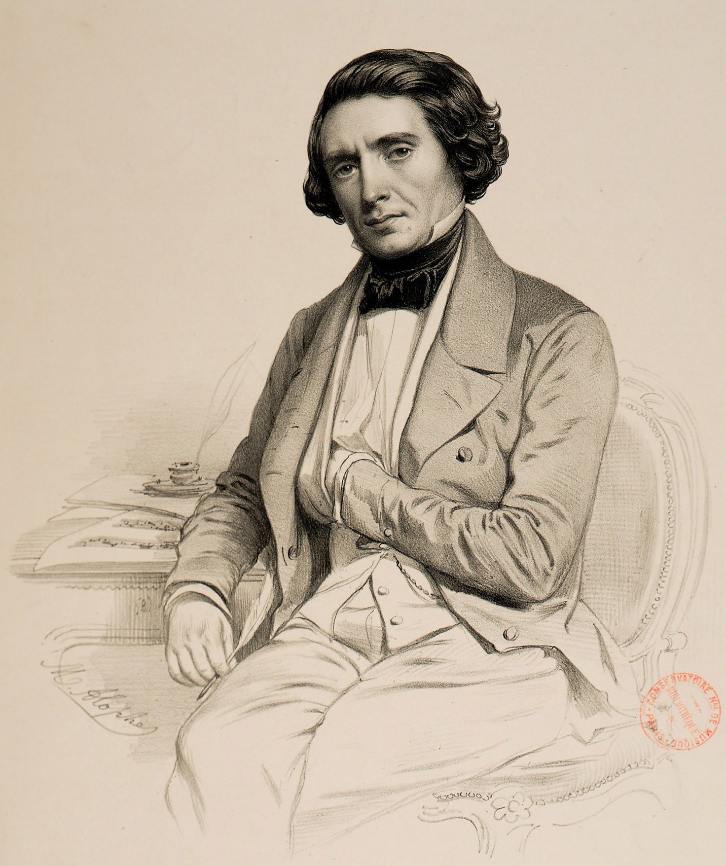English: French composer Hippolyte Colet (1808-1853) portrayed as a professor of harmony at the Conservatoire royal de Paris by Marie-Alexandre Alophe (1812-1883). |