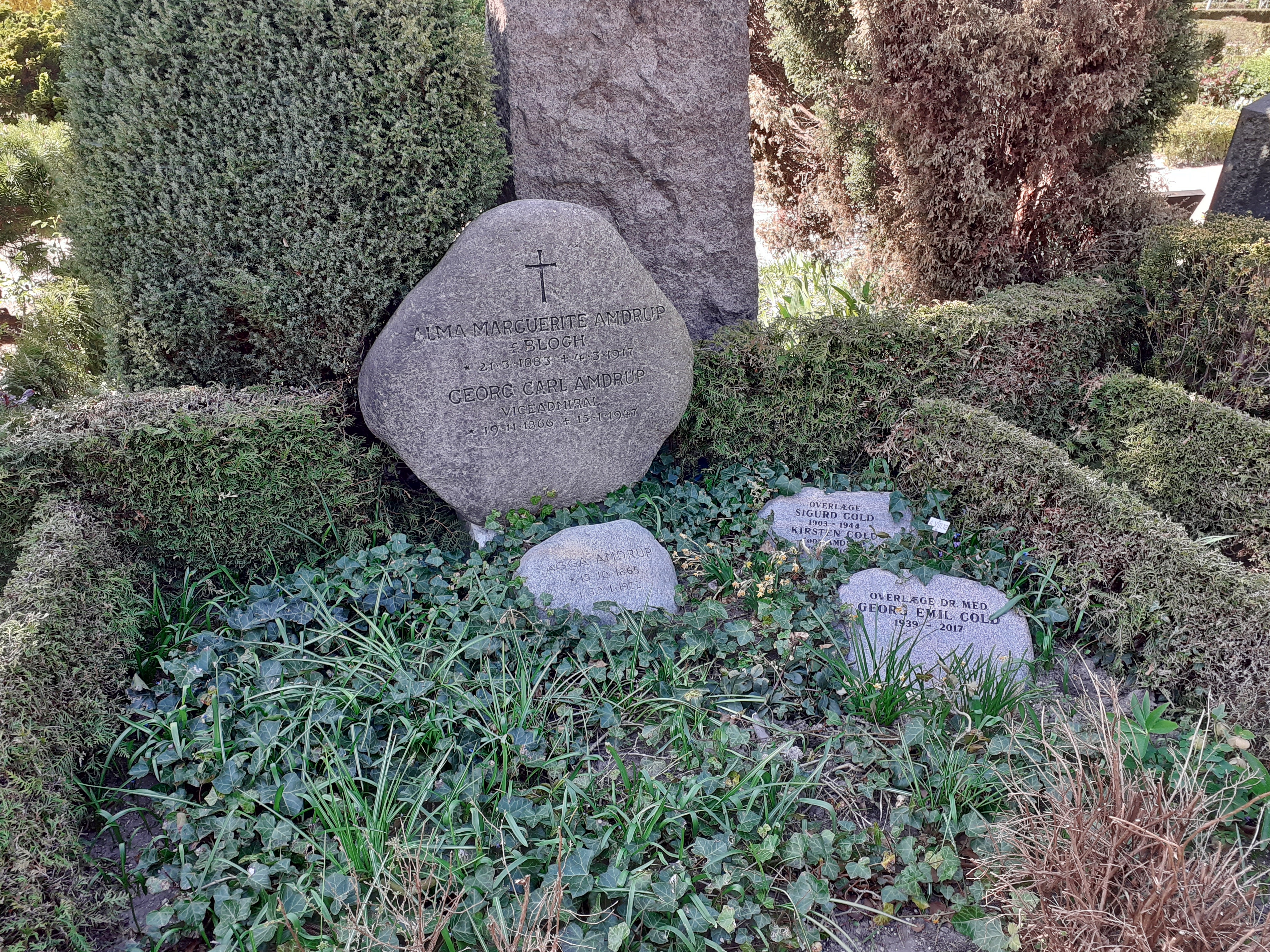 English: The grave of the viceadmiral Georg Carl Amdrup (1866-1947) at Holmens Kirkegård in Copenhagen. Before he became a viceadmiral he was the leader of a expedition to East Greenland in 1898-1900. |