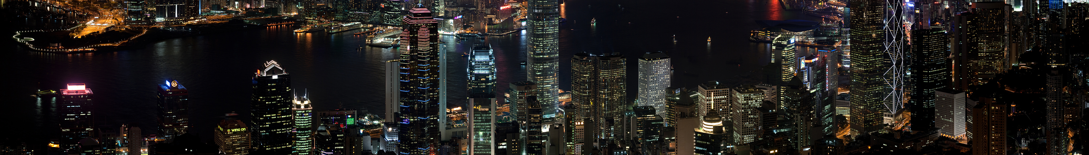 English: Panorama of Hong Kong night skyline. Taken from Lugard Road at Victoria Peak. |