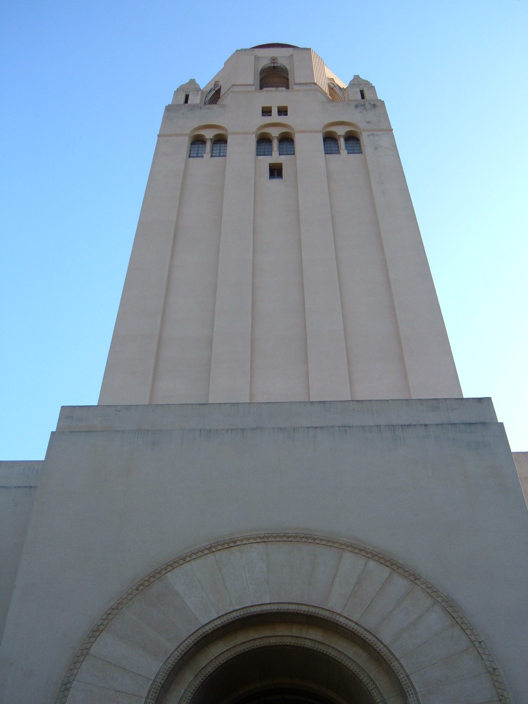 Description The east face of Hoover Tower on the Stanford University campus in Stanford, California, as seen from the ground.
