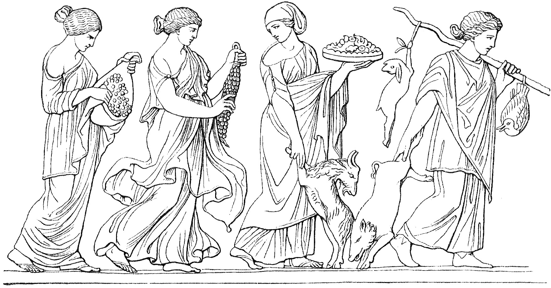 Deutsch: Die Horen, dem Peleus Hochzeitsgeschenke bringend (Paris, Louvre) |