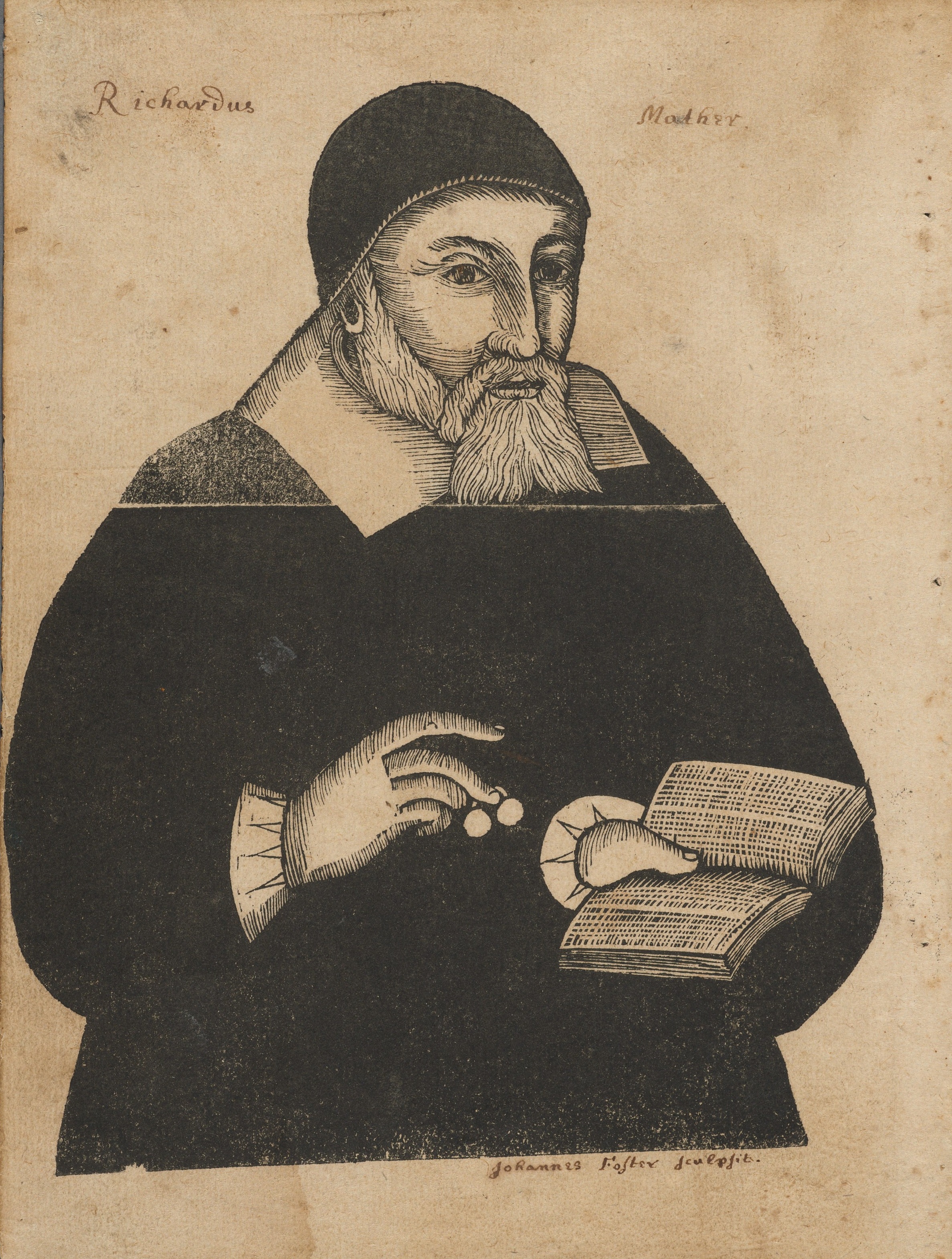 English: Illustration of Richard Mather (1596-1669) by John Foster, circa 1675, used as an added frontispiece to a reissue of The life and death of that reverend man of God, Mr. Richard Mather, teacher of the church in Dorchester in New-England, 1670, by Increase Mather. *AC6.Ad198.Zz683t no.5, Houghton Library, Harvard University |