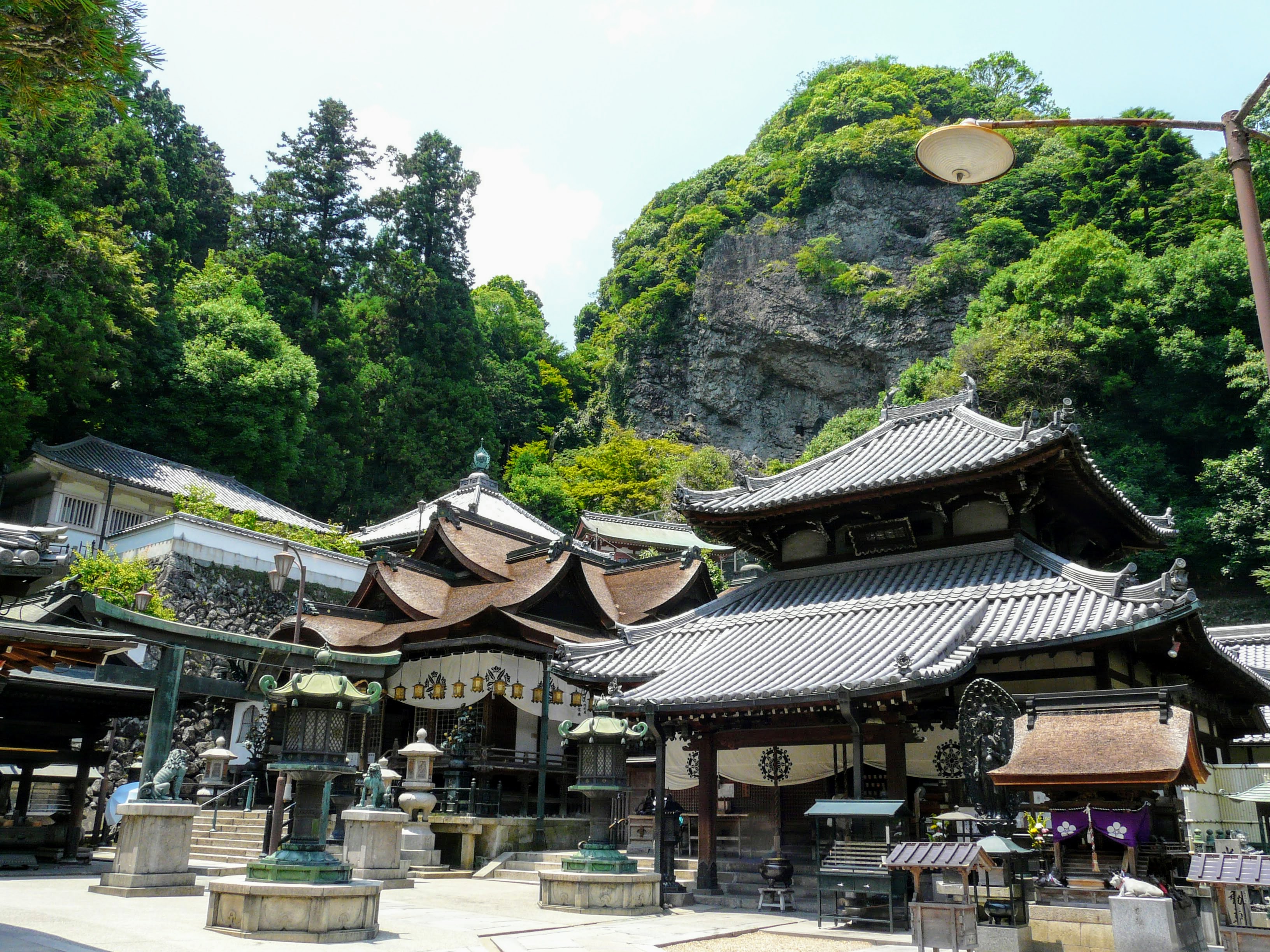 English: The main hall of Hozan-ji Temple in Monzen-cho, Ikoma City, Nara Prefecture (right) and Shoten (left) (Japanese) |